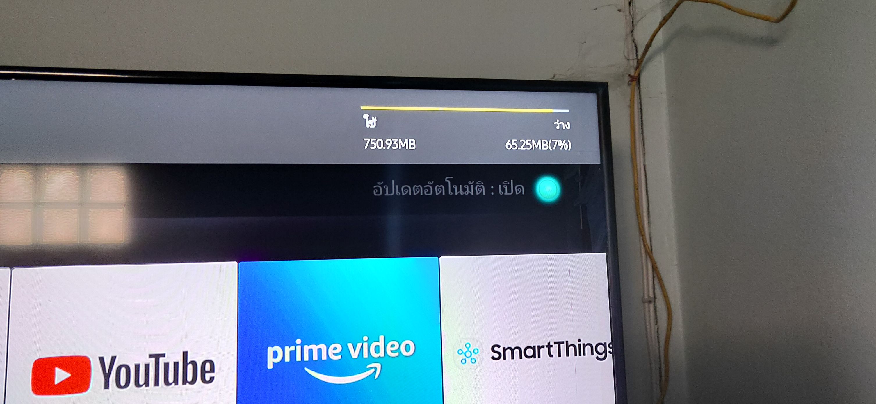 ในภาพจะเห็นว่า พื้นที่เก็บข้อมูลในทีวี เต็ม ไม่สามารถ Update ได้ครับ