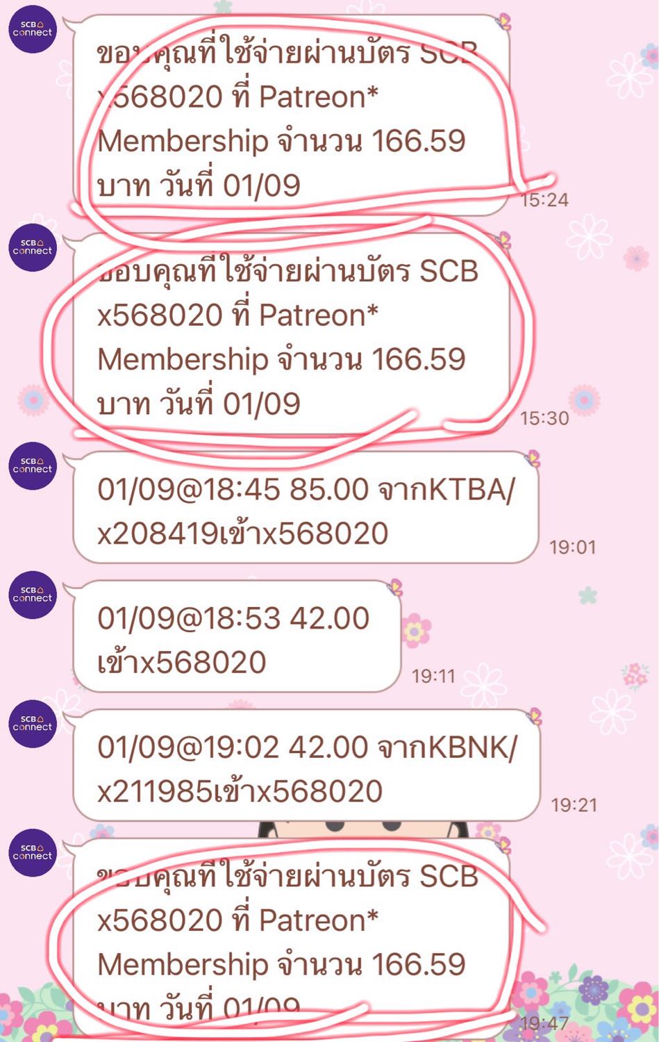โอนเงินที่แอป PATREON ไป 166.59 บาท แต่แอปแจ้งว่ายังไม่ได้จ่าย ทั้งๆที่ธนาคารหักเงินแล้ว SCB