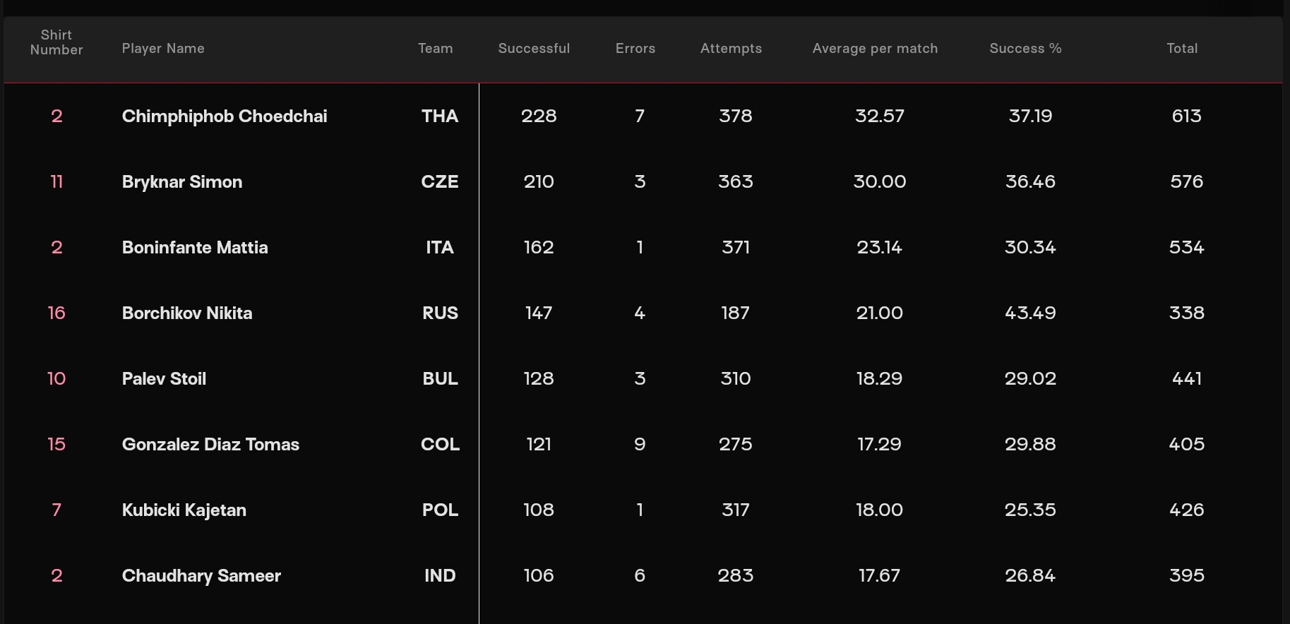 ล่าสุดหลังจบเกมไทย-โคลัมเบียร์ Best Setter เชิดชัย ฉิมพิภพ ของเราขึ้นอันดับหนึ่งของตารางแล้ว ส่วน Best Servers น้อง เบอร์ 3 กิตติพงษ์ สังศักดิ์ ขึ้นมาที่ อันดับ 4 ของตาราง ช่วยกันปรบมือให้น้องๆรัวๆครั