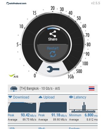 เมื่อวานได้แจ้งปัญหาเกี่ยวกับ Internet บ้านไปที่ True ทาง True ได้ตกลง Up speed ให้จาก 500/500 เป็น 1Gbps/1Gbps. แต่รู้สึกว่าเมื่อใช้ Net อืดกว่าเดิม ใช้ ได้ลองใช้ True internet speed test ดู ปรากฎว่า