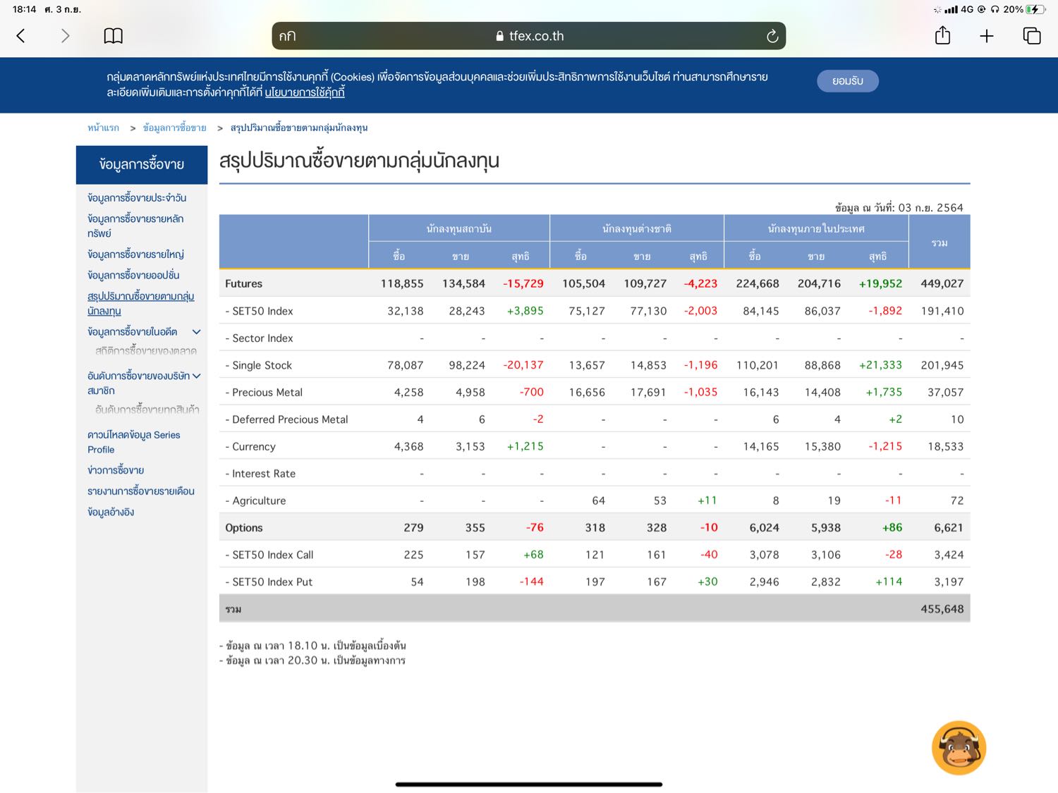 Sinthorn Summary : 3/9/2564 : ต่างชาติซื้อสุทธิ 1,455.32 ลบ.