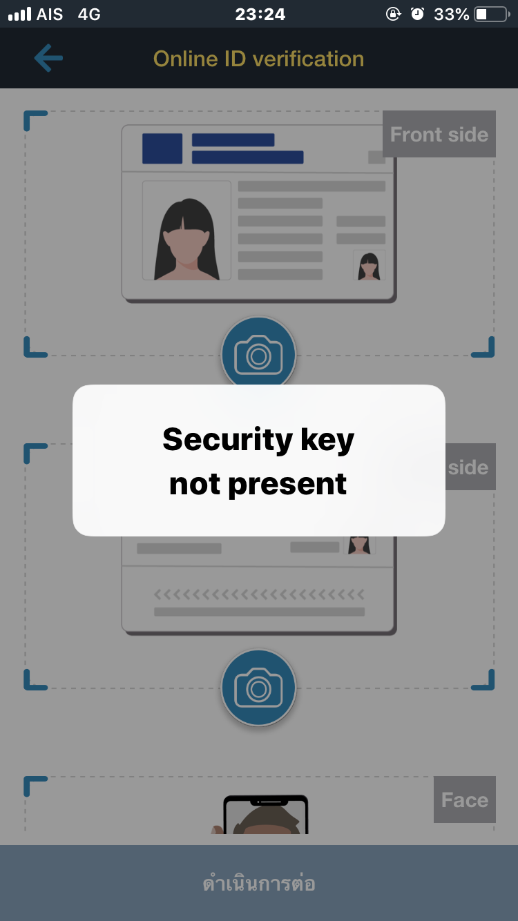 ยืนยันตัวตนที่ Western Union ไม่ได้ค่ะ มันขึ้นว่า Security key not present