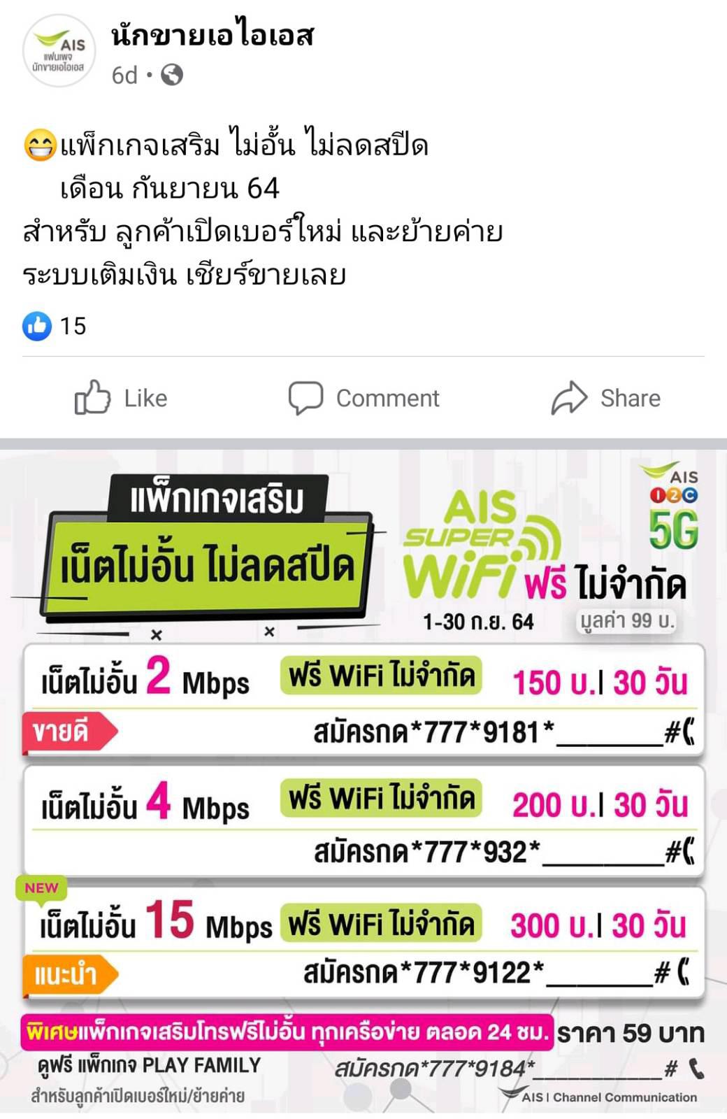 เอไอเอสเปลี่ยนเงื่อนไขในการสมัครโปร 15Mbps เดือนละ 300 บาท เหรอครับ ??