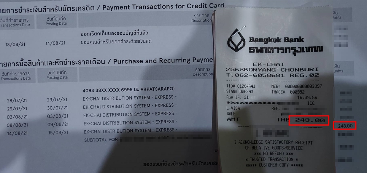 บัตรเครดิตโลตัส วีซ่า คิดเงินมาผิด เห็นเค้าบอกให้เช็คทุกเดือน นี่ลองเช็คครั้งแรกก็เจอผิดเลย