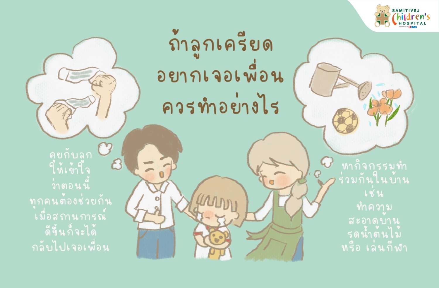 และถ้าคุณพ่อคุณแม่สังเกตเห็นว่าลูกมีความเครียดเกิดขึ้น ก็ให้พูดคุยกันเยอะๆ เพื่อให้เด็กได้ระบายความรู้สึกในใจออกมา หรือถ้ารู้สึกว่าหนักเกินไปก็สามารถพาลูกมาปรึกษาจิตแพทย์เด็กได้