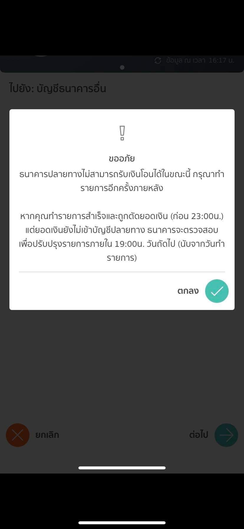 โอนเงิน และ จ่ายบิล ไม่ได้
