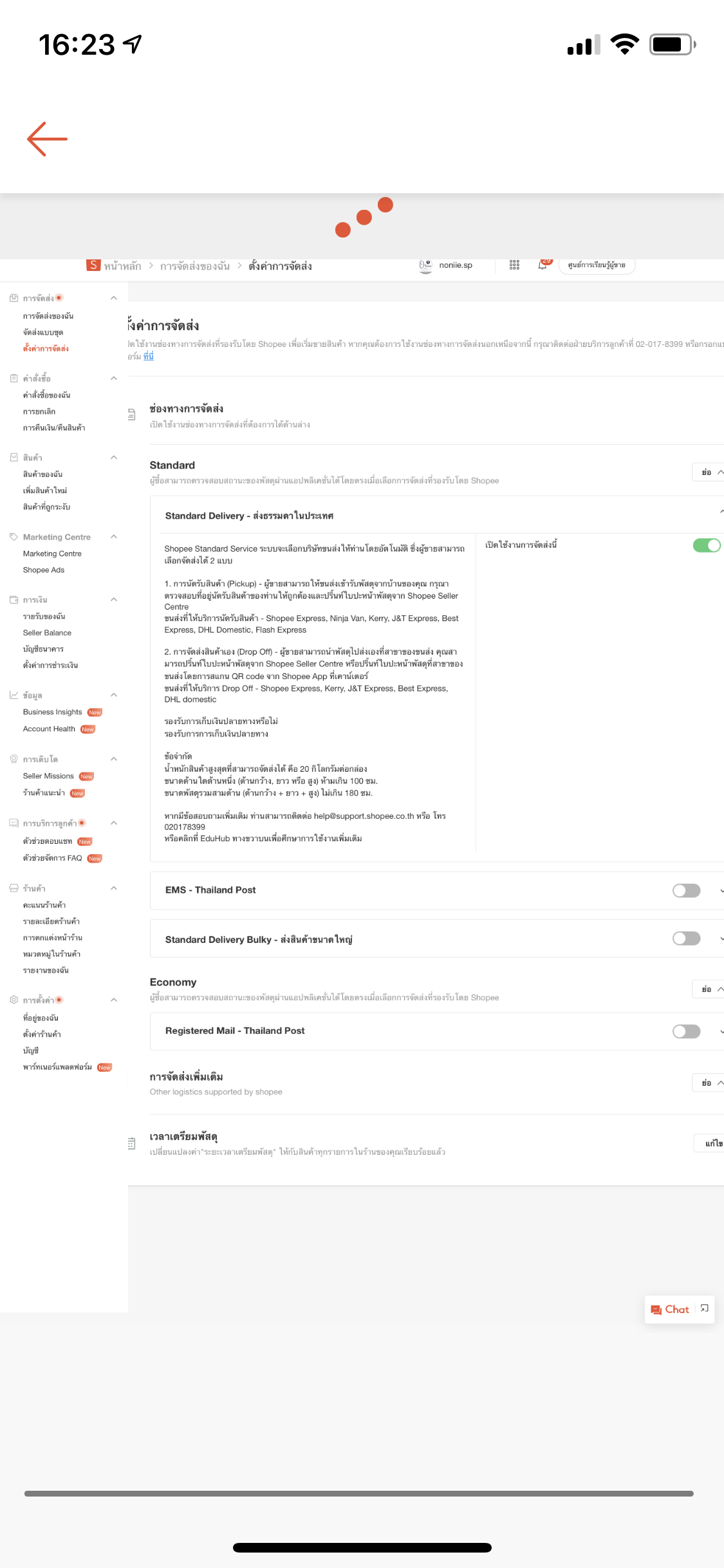 ตั้งค่าจัดส่งของด้วย ลทบ กับ ems ของ Shopee ไม่ได้ค่ะ