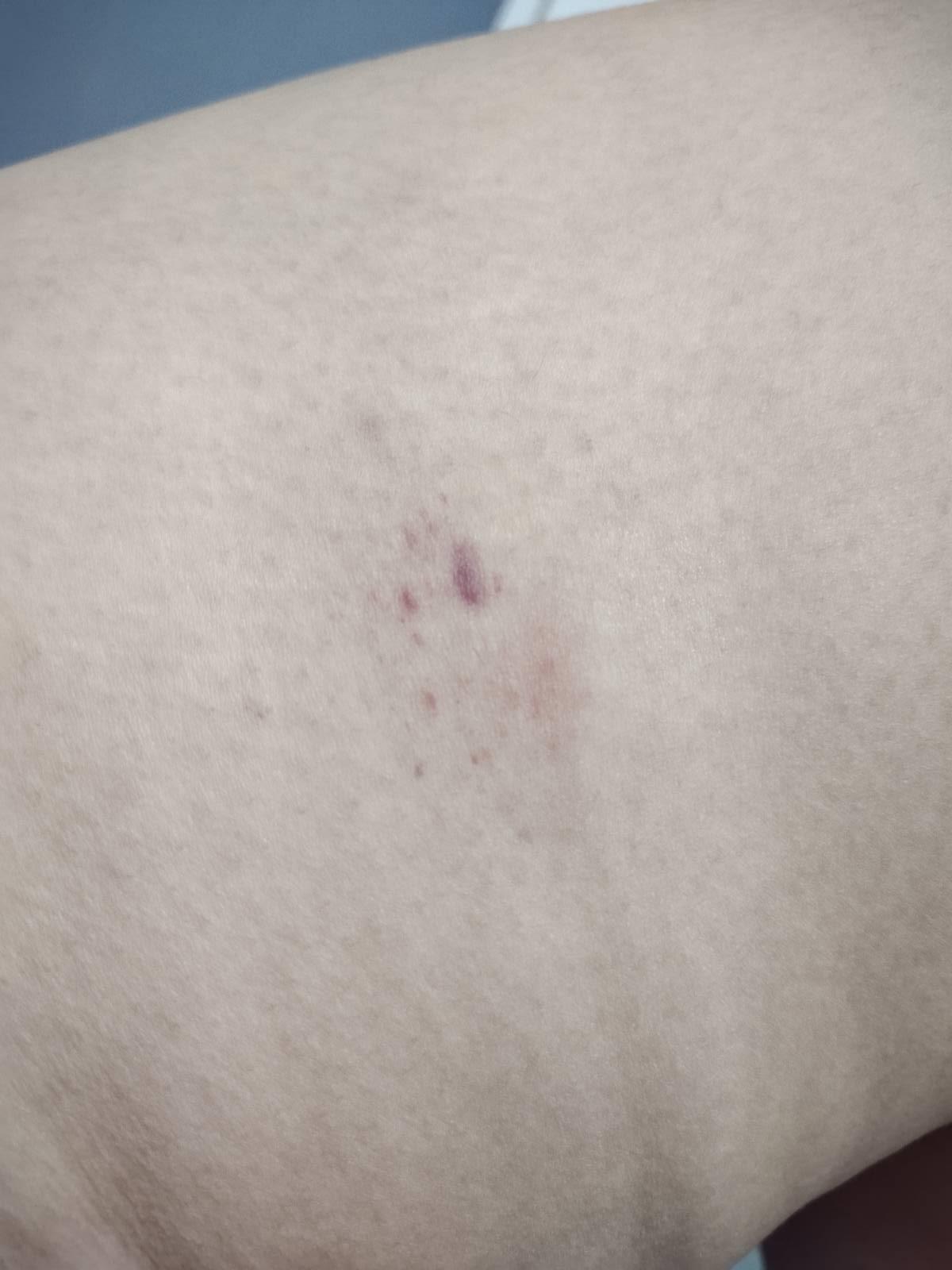 มีจุดเลือดออกที่ขาเป็นจุดๆ ปกติไม่เคยเป็น พอฉีดวัคซีนเข็ม 2 มาเกือบ 3 วัน มีผื่นขึ้นบริเวณที่ฉีดวัคซีน คิดว่าน่าจะเป็นปกติหลังฉีดวัคซีน เหมือนตอนเด็ก แต่ล่าสุดวันนี้ เกือบอาทิตย์ มีจุดเลือดออกที่บริเวณขา ไม่ได้เกา ไม่ได้ทำอะไรสักอย่าง ขึ้นมาเอง เลยสงสัยเกี่ยวกับวัคซีนไหม หรือยังไง หรือปกติ ขึ้นเองจะหายเอง บอกตรงๆตอนนี้วิตกกังวนมาก