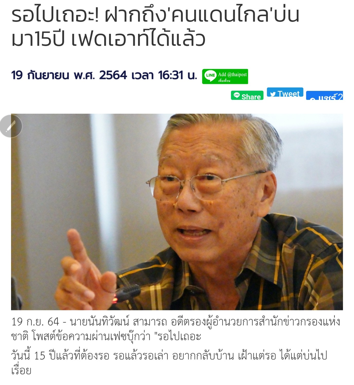 https://www.thaipost.net/main/detail/115210 ประชาชน ปัญญาชน เขารู้ทันไม่มีใครเชื่อทักษิณ...