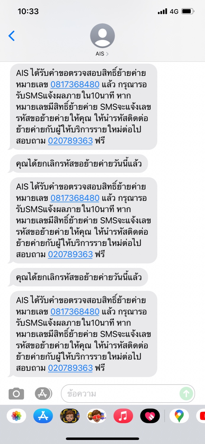 Ais คุณมากดยกเลิกการย้ายค่ายของผมแบบนี้ไม่ไหวนะครับห่วยมากๆรีบๆแก้ไขส่งรหัส 8 ตัวมาเลยครับ