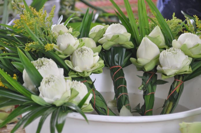 ดอกไม้ที่มัดอยู่ดอกบัว ที่เป็นรวงๆคือดอกอะไรครับ