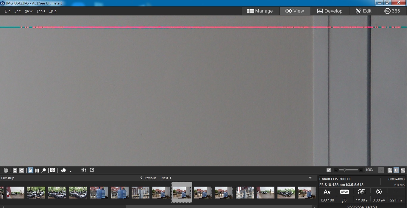 ผมเพิ่งซื้อกล้อง Canon 200D Mark II มาใหม่ ลองถ่ายภาพแล้ว บ้างภาพจะมีขีดแดง ขึ้นที่มุมบนขวาด้านบน