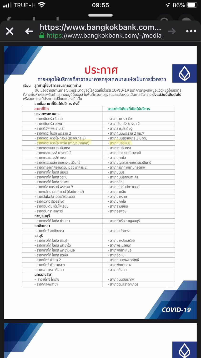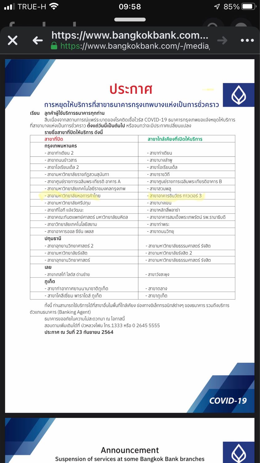 พอดีมันมีเรื่องราวของ โควิด-19 เข้ามาเกี่ยวข้อง ที่ทำให้ธนาคารกรุงเทพบางสาขาปิดชั่วคราว แล้วทางธนาคารแจ้งว่ามีสาขาข้างเคียง ที่บางสาขายังคงเปิดให้บริการตามปกติ