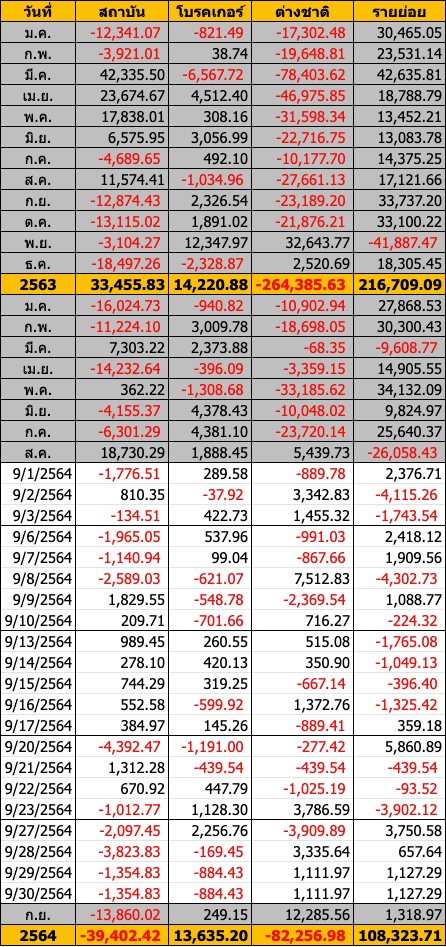 Sinthorn Summary : 30/9/2564 : ต่างชาติซื้อสุทธิ 1,111.97 ลบ.