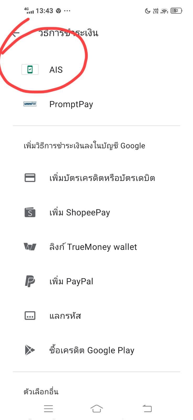 ชำระเงิน Play store ผ่าน Ais ไม่ได้ครับ