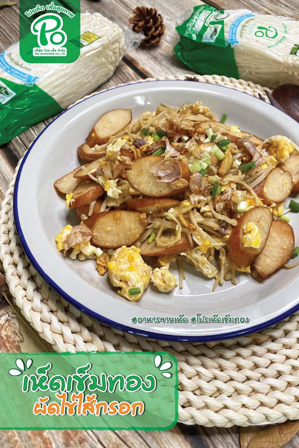 เห็ดเข็มทองผัดไข่ไส้กรอก By โปรเห็ด