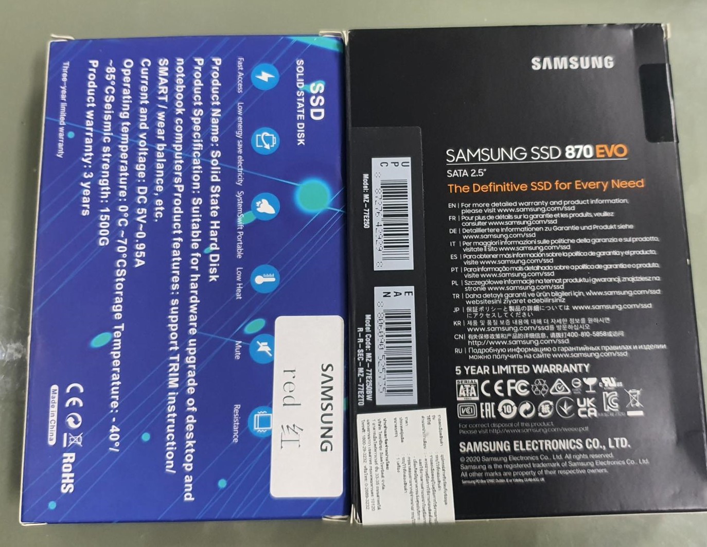 (กล่องสีฟ้า SSD สีแดง)