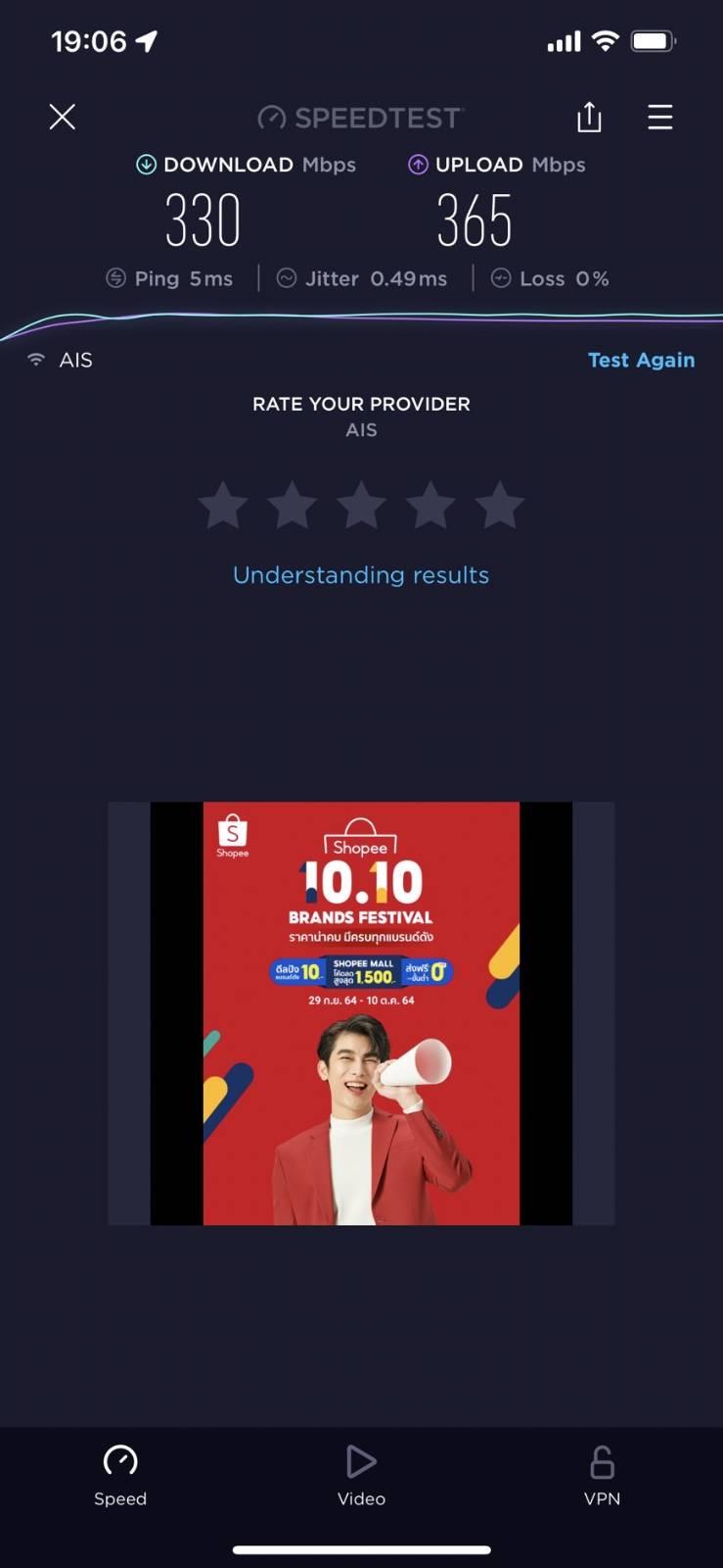 เมื่อติดตั้งเสร็จทางช่างได้เทสสปีดด้วย iphone 11 ได้ความเร็วที่ 700++ mbps ซึ่งก็แสดงหน้าจอให้คุณพ่อคุณแม่ของผมดู เพื่อเซ็นปิดจ๊อบงาน