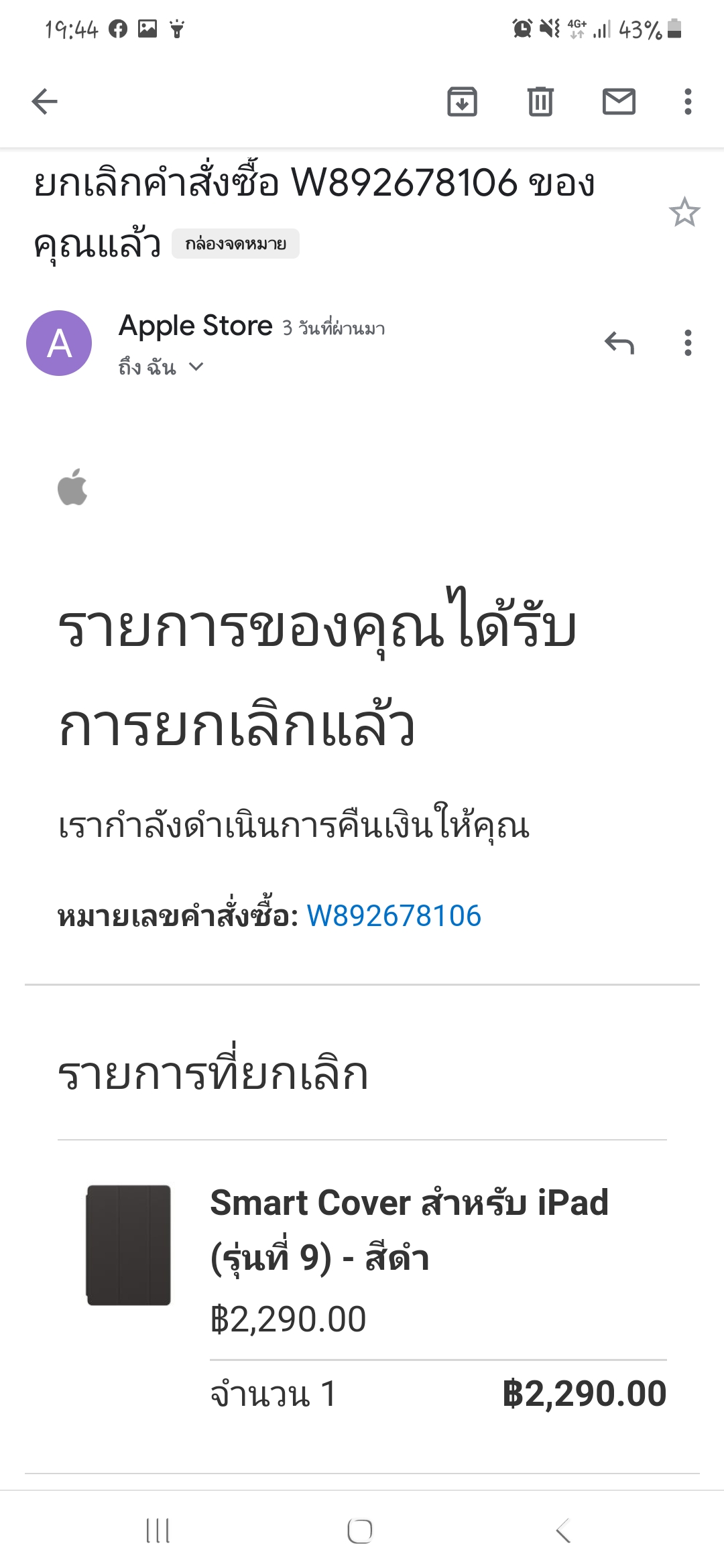 สอบถามได้ไหมครับ คือผมเผลอไปกดซื้อแล้วผมยกเลิกเมื่อวันพุธที่ผ่านมา ไม่ทราบว่าเขาทาง Apple Store จะคืนเงินไหมครับ ผมรอมา3วันแล้ว ใช้เวลานานไหมครับ