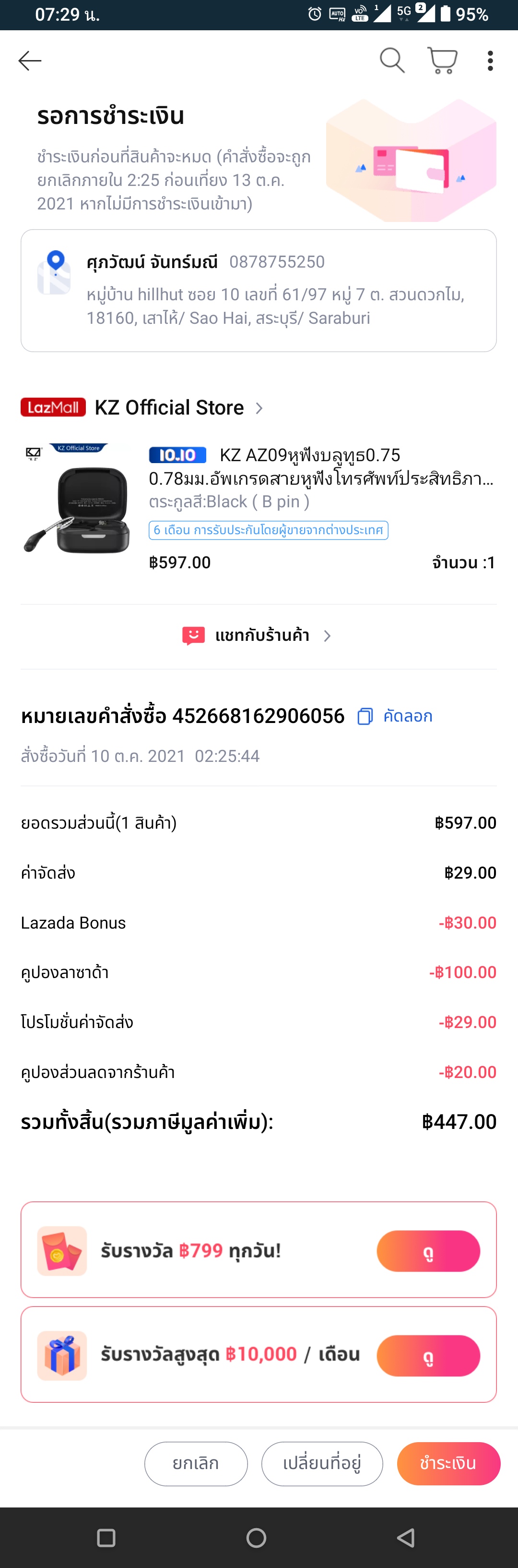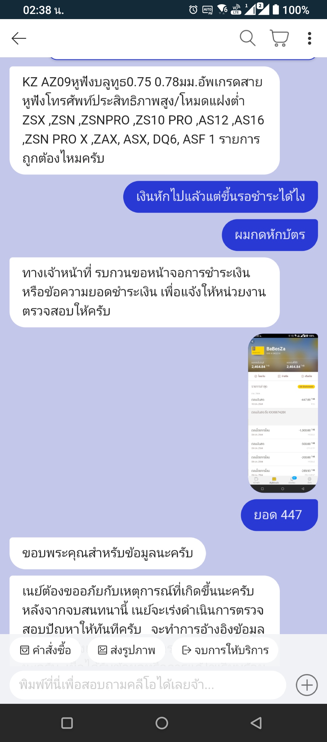 ผมได้กดสั่งของ ไปพร้อมหักเงินจากบัตรเลย 447บาท
