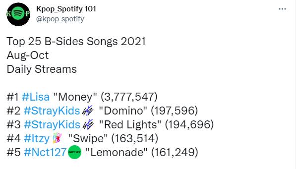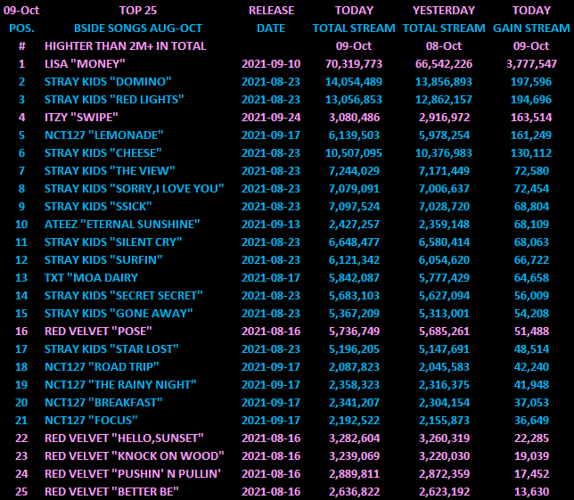 Top 25 B-Sides Songs 2021 Aug-Oct Daily Streams