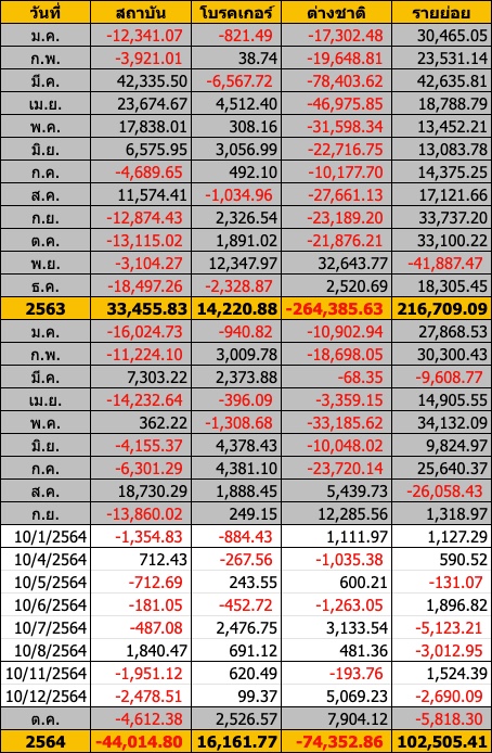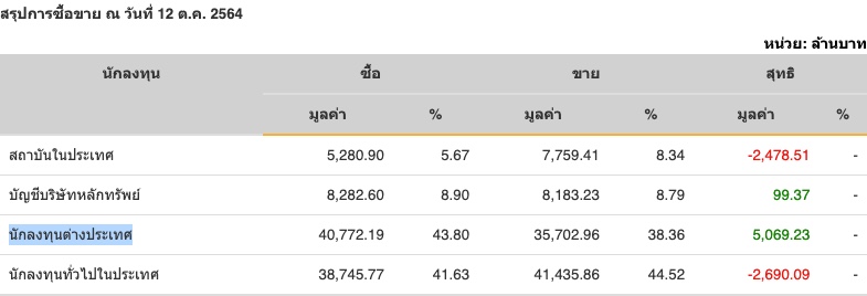 Sinthorn Summary : 12/10/2564 : ต่างชาติซื้อสุทธิ 5,069.23 ลบ.
