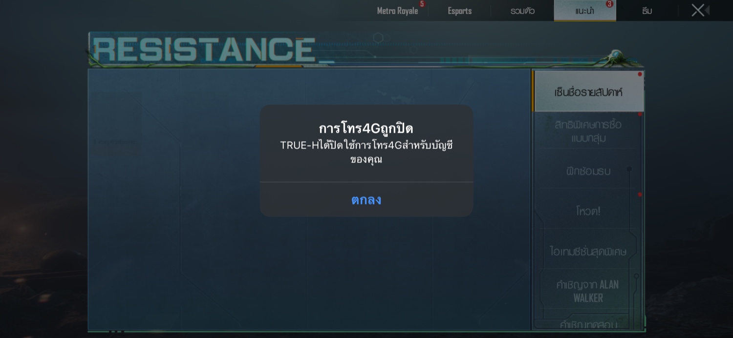 โทรศัพท์ขึ้นว่า TRUE-H ถูกปิดบัญชีการโทร4g