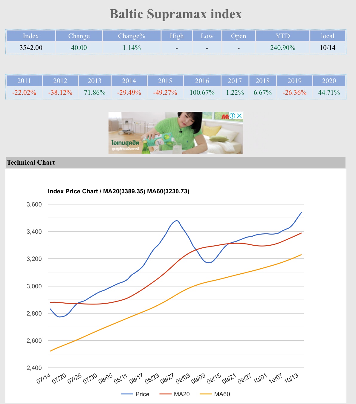 ค่าระวางเรือ Baltic Supermax Index สูงสุดเป็นประวัติการณ์ เมื่อเทียบกับช่วงเวลาเดียวกันนี้ของปีก่อนๆ สวนทางกับ BDI index ข่าวหุ้น