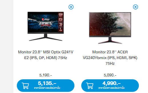 ผมกำลังเลือกจอใหม่ครับ ในตัวเลือกมีจอรุ่นใหม่ของ AOC รุ่น 24g2e กับ Acer รุ่น vg240ysbmiipx หาลองหน้าร้าน JIB กับ Advice แถวบ้านผมไม่ได้เลย แต่สั่งจากออนไลน์ได้ คุณภาพก็ไม่ทราบว่ายี่ห้อไหนเป็นยังไง เพ