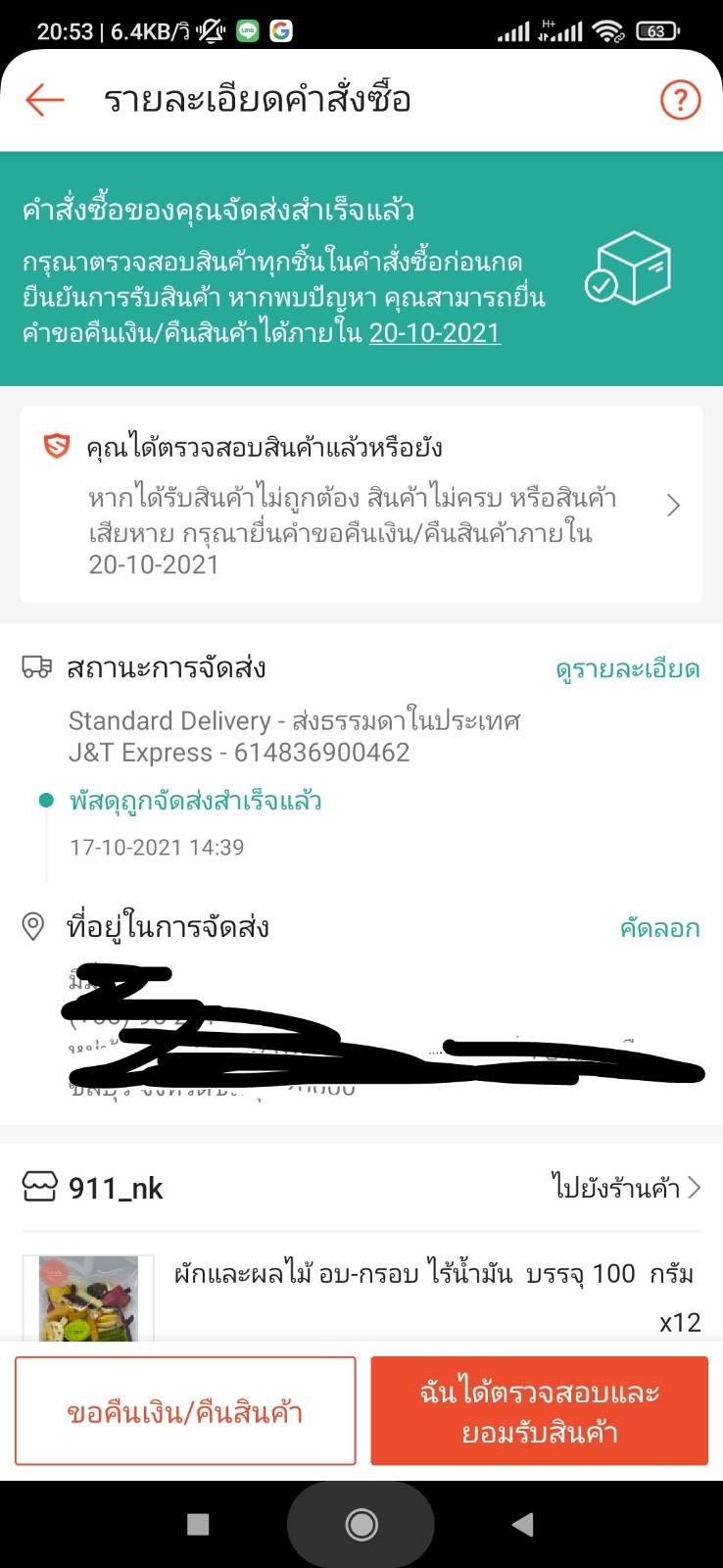 ยังไม่ได้รับของ แต่สถานะการส่งของขึ้นว่าส่งสำเร็จ ตั้งแต่บ่าย2ครึ่ง