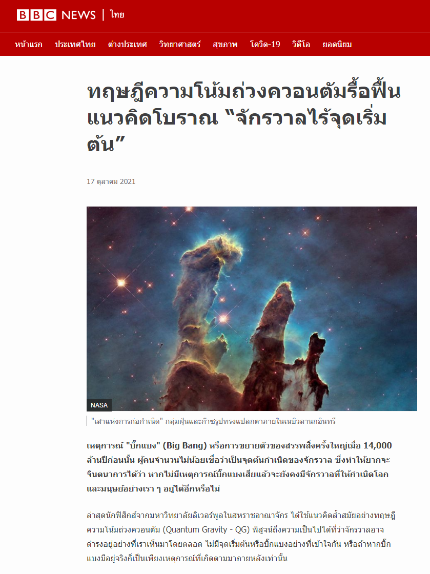 ทฤษฎีความโน้มถ่วงควอนตัมรื้อฟื้นแนวคิดโบราณ “จักรวาลไร้จุดเริ่มต้น” - BBC News ไทย