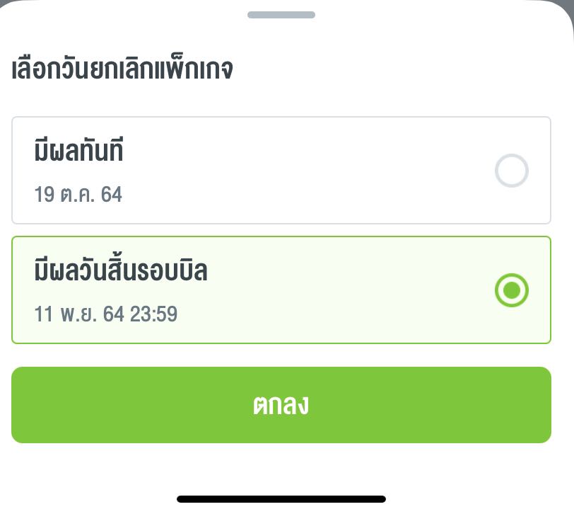 ยกเลิกมีผลเลย (ตัดเงินเต็มเดือน แต่มีผลทันทีเลย)