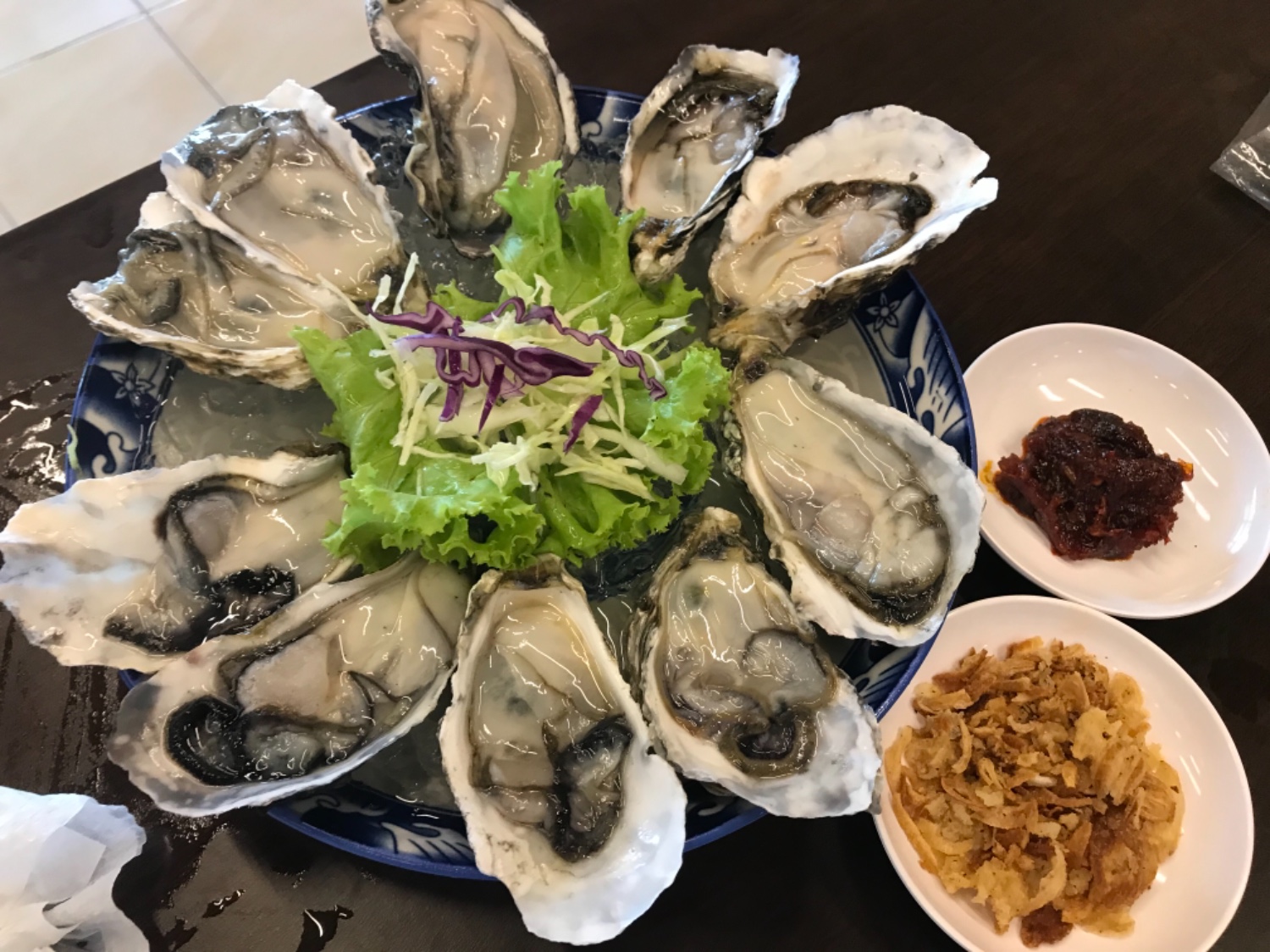 - หอยนางรมสด ไซด์ไม่ใหญ่มาก สดดี แต่กินไม่ได้เยอะ เพราะต้องขอแบ่งโควต้าคอเรสเตอร์รอลไปให้หัวกุ้งเผา