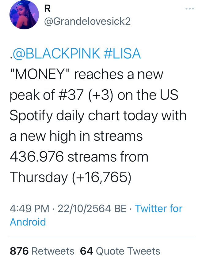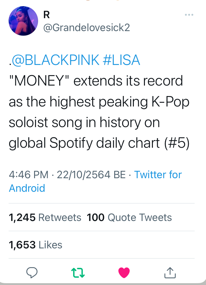 Money ไม่แผ่ว Top 5 Spotify Global และ #37 Spotify US highest peaking K-pop Soloist