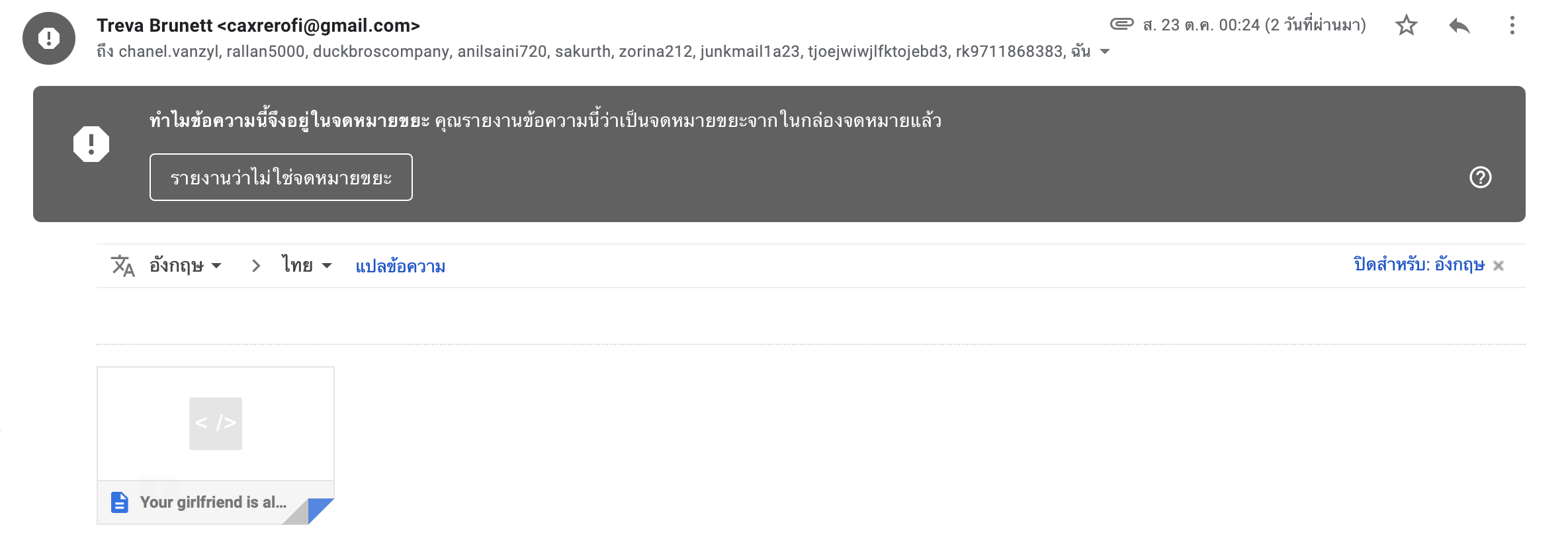 ช่วงหลายวันมานี้ ผมได้รับฟิชชิ่งอีเมลจากเมลแปลกๆครับ เมื่อกดเข้าไปดูจะพบว่ามีไฟล์แนบนามสกุล .htm หรือ .html มาด้วย ผมไม่ได้เปิดเข้าไปนะครับ เพราะมองเฉยๆกรู้ว่าไม่เป็นไวรัสก็ฟิชชิ่ง ประเด็นคือเมลพวกนี้รอดการกรอง spam จาก junk box มาได้ด้วย และไม่ได้ใช้อีเมลเดิมส่งมาตลอด แต่เปลี่ยนอีเมลใหม่แล้วส่งมาทุกวัน ดังนั้นการบล็อกแค่แอคเค้าท์เดียวหรือรายงานว่าเป็น spam เพียงอีเมลเดียว (ตามรูป 2) อาจไม่ช่วยอะไรครับ