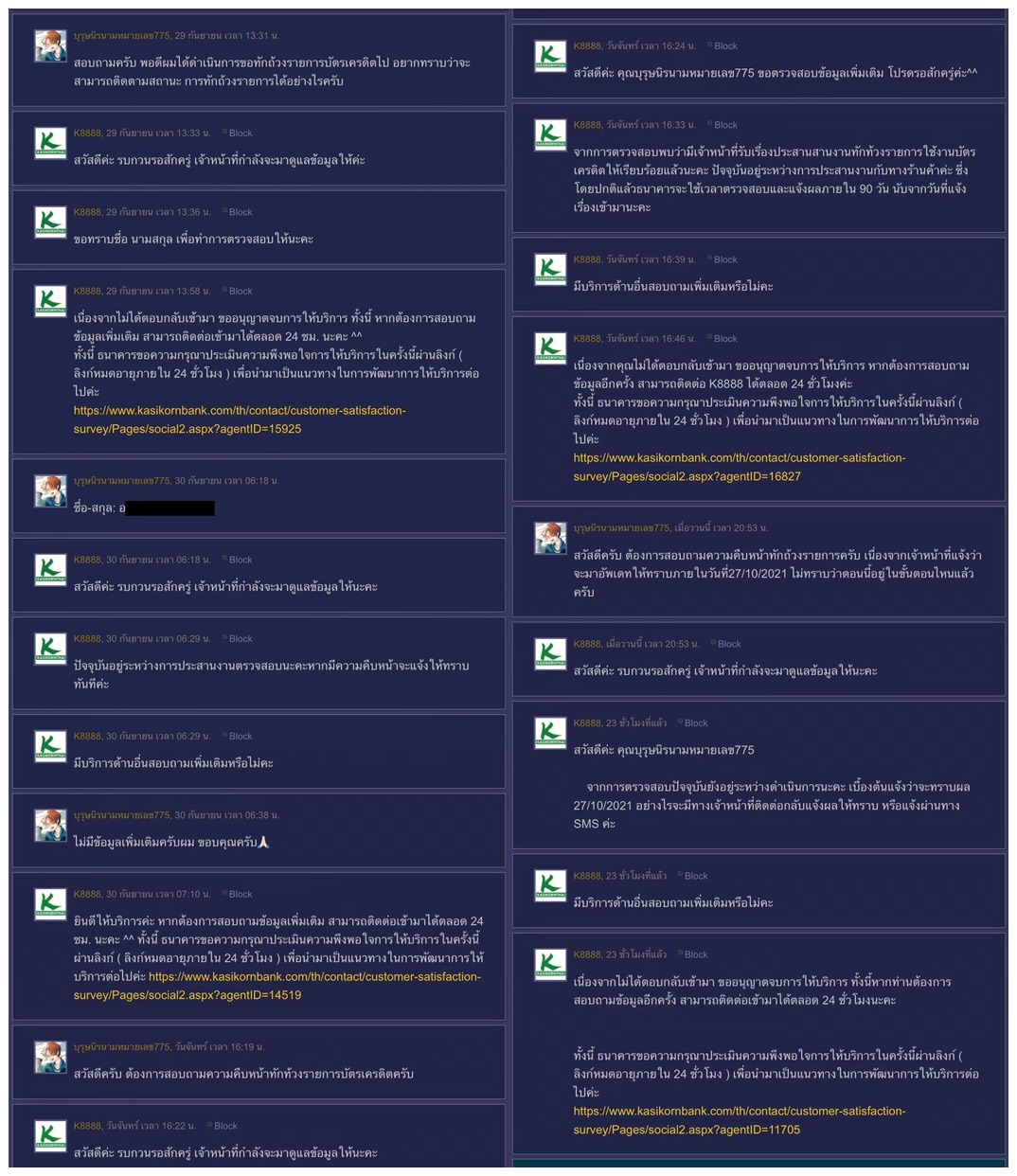 ระหว่างที่รอการดำเนินการ ผมก็ได้ทักเข้าไปติดต่อสอบถามผ่านช่องทางหลังค์ไมค์ของ K888 อยู่เป็นระยะๆ เพื่อที่จะติดตามสถานะว่าเรื่องไปถึงไหนแล้ว แต่ก็ได้ข้อมูลตามที่เห็นในภาพด้านล่าง คือ ค่อนข้างที่จะคลุมเคลือและไม่มีความชัดเจนใดๆ