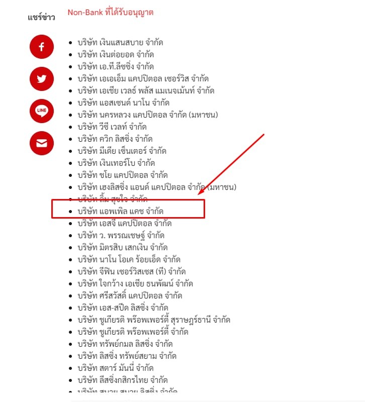 แล้วผมไปเช็คในเว็บของธนาคารแห่งประเทศไทย ปรากฏว่ามีชื่อบริษัทนี้จริง