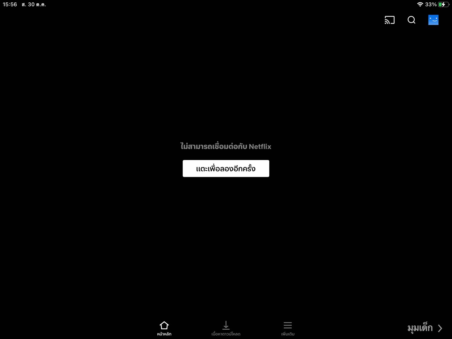 netflixในไอแพดดูไม่ได้ค่ะเงินก็จ่ายครบ แต่ดูไม่ได้ค่ะเป็นตั้งแต่เมื่อวานแล้วคิดว่าบัคนิดหน่อยไม่น่ามีอะไร ตอนเช้าวันนี้ดูได้ปกติค่ะพอจะมาดูต่อตอนช่วงบ่ายๆขึ้นแบบในรูปเลยค่ะ เราลองเปิดในโทรศัพท์ก็ดูได้ปกติค่ะ มีใครเป็นเหมือนกันมั้ยหรือมีวิธีแก้มั้ยคะ