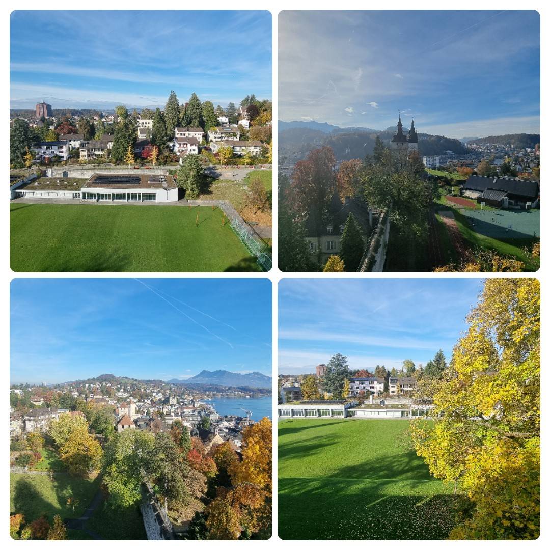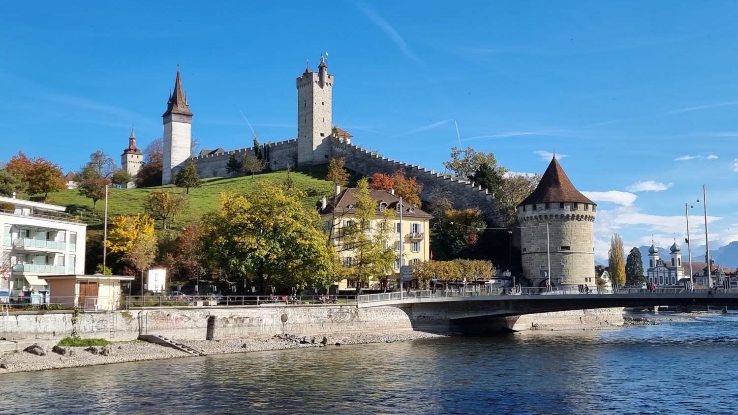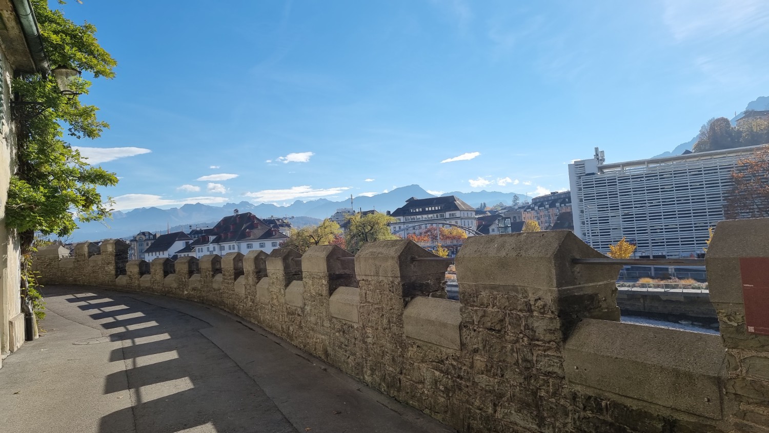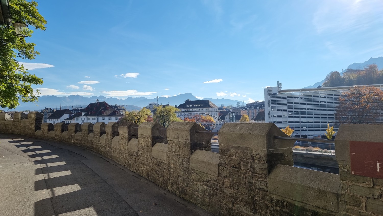 เดิมว่าจะมาที่กำแพงเมือง ขึ้นไปด้านบนสุด แต่เดินเพลินอ้อมมาที่หอคอยนาฬิกาที่เก่าแก่ที่สุดของ Luzern หอคอยนี้ จะอยู่ด้านทิศเหนือของเมืองเก่าของลูเซิร์น ซึ่งเป็นกำแพงที่สร้างขึ้นระหว่างปี ค.ศ. 1350 ถึงปี ค.ศ. 1408 โดยมีหอคอยเก้าแห่งที่สร้างขึ้นในรูปแบบที่แตกต่างกัน ส่วนที่สร้างขึ้นเมื่อราว ๆ 1386 ยังคงสภาพสมบูรณ์อยู่เกือบทั้งหมดและผมก็ปีนขึ้นหอคอยไปชมทัศนียภาพของเมืองทะเลสาบและภูมิทัศน์โดยรอบ นาฬิกาที่เก่าแก่ที่สุดของ Lucerne สร้างขึ้นในปี 1535 ตั้งอยู่ที่หอคอย Zyt และมีการตีระฆังชั่วโมงเป็นเวลาหนึ่งนาทีก่อนนาฬิกาเมืองอื่น ๆ ทั้งหมด