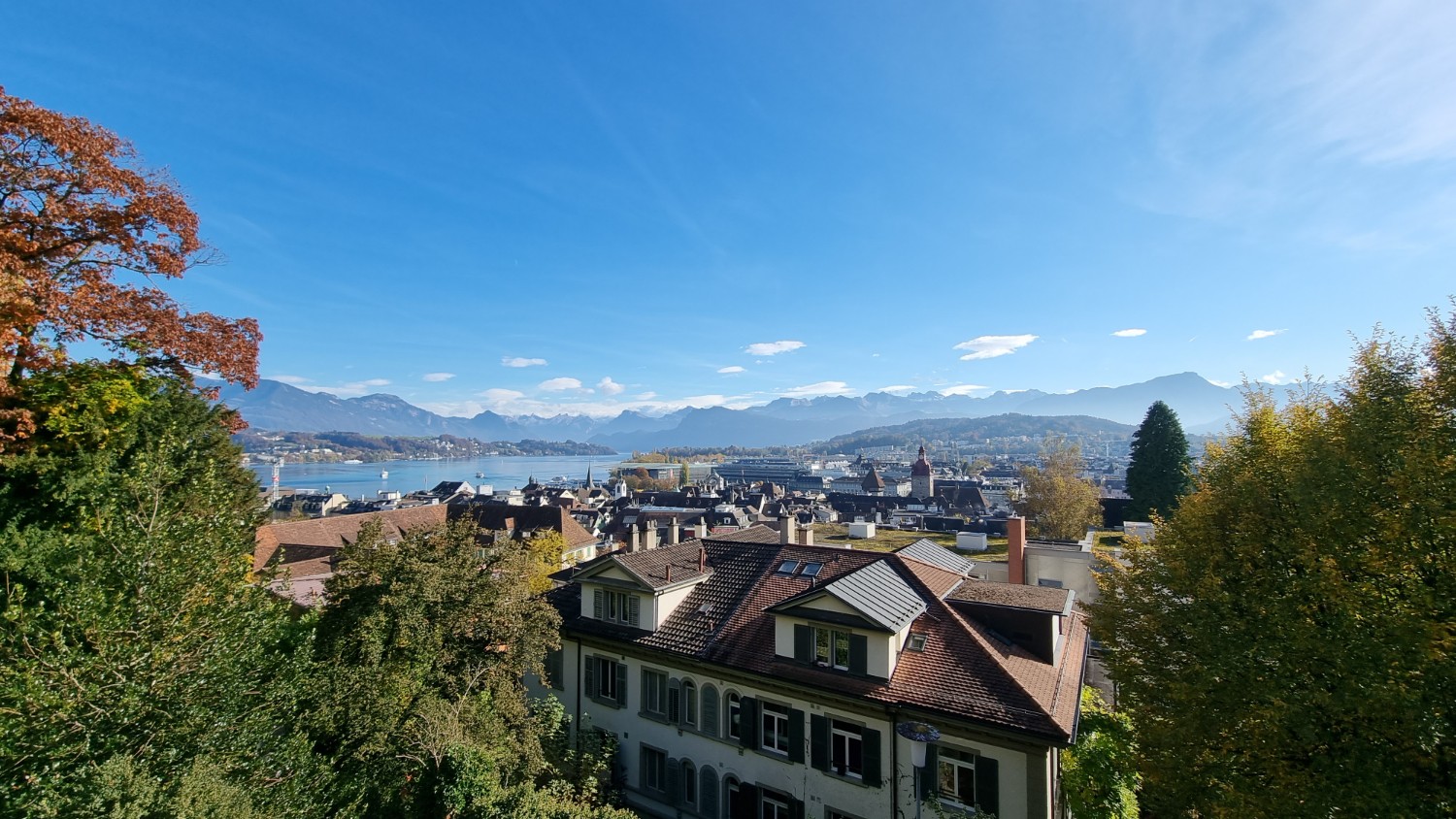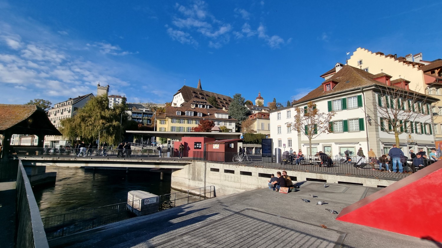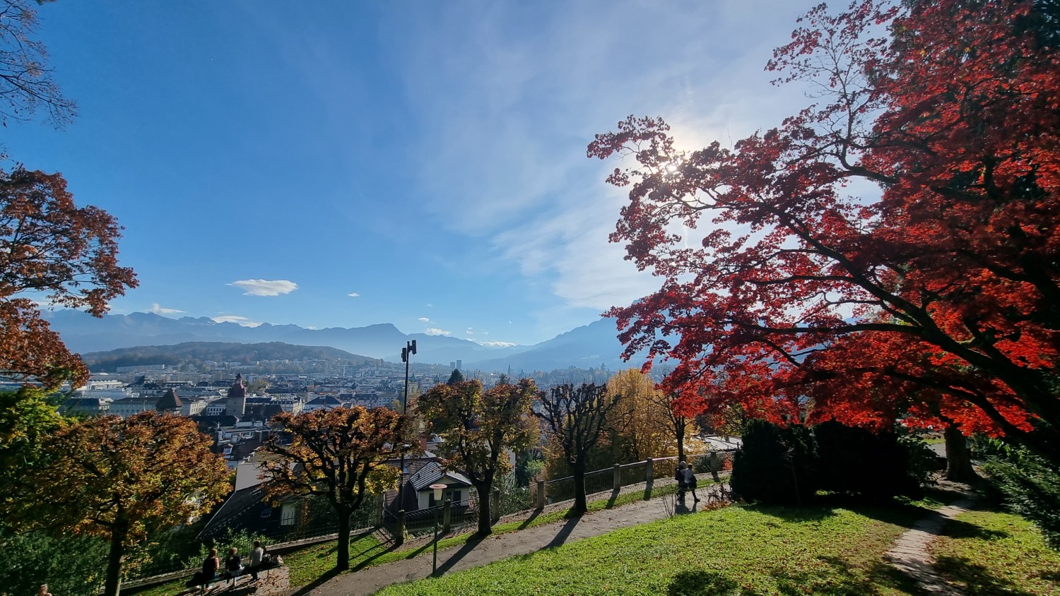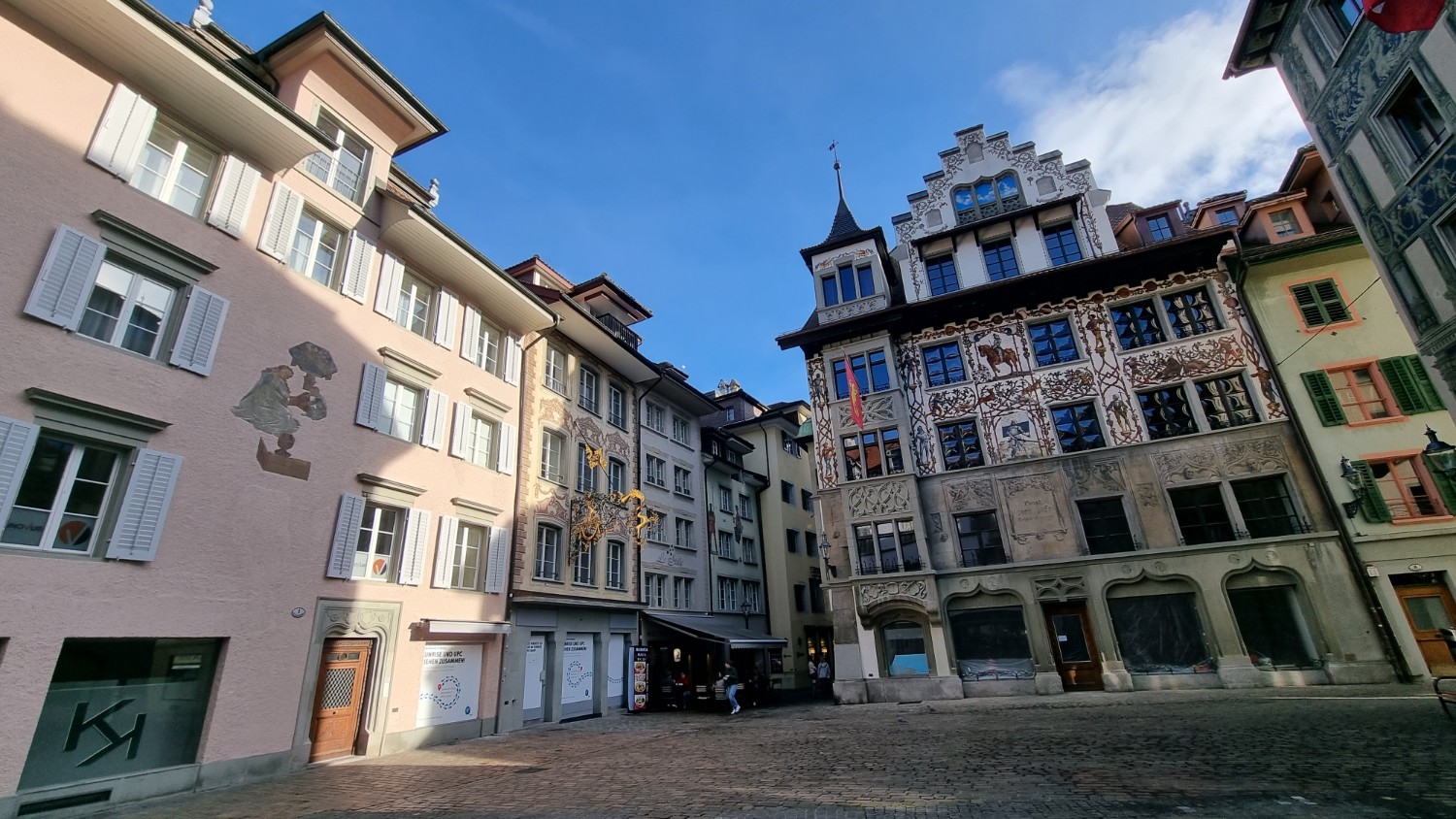เดิมว่าจะมาที่กำแพงเมือง ขึ้นไปด้านบนสุด แต่เดินเพลินอ้อมมาที่หอคอยนาฬิกาที่เก่าแก่ที่สุดของ Luzern หอคอยนี้ จะอยู่ด้านทิศเหนือของเมืองเก่าของลูเซิร์น ซึ่งเป็นกำแพงที่สร้างขึ้นระหว่างปี ค.ศ. 1350 ถึงปี ค.ศ. 1408 โดยมีหอคอยเก้าแห่งที่สร้างขึ้นในรูปแบบที่แตกต่างกัน ส่วนที่สร้างขึ้นเมื่อราว ๆ 1386 ยังคงสภาพสมบูรณ์อยู่เกือบทั้งหมดและผมก็ปีนขึ้นหอคอยไปชมทัศนียภาพของเมืองทะเลสาบและภูมิทัศน์โดยรอบ นาฬิกาที่เก่าแก่ที่สุดของ Lucerne สร้างขึ้นในปี 1535 ตั้งอยู่ที่หอคอย Zyt และมีการตีระฆังชั่วโมงเป็นเวลาหนึ่งนาทีก่อนนาฬิกาเมืองอื่น ๆ ทั้งหมด