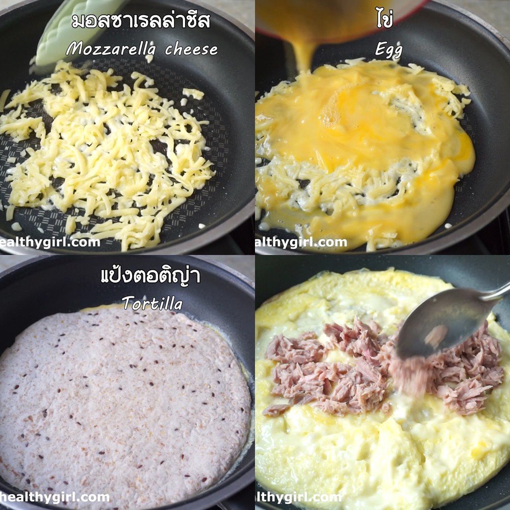 ตอติญ่าทูน่าชีส และตอติญ่าไข่แฮมชีส อาหารเช้าง่ายๆใน 10 นาที