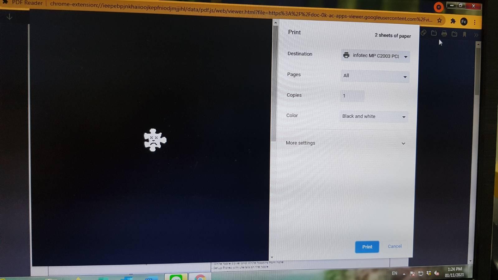 ผมไม่สามารถ print pdf จากหน้า ของ chome ได้ เมื่อ จะสั่งprint จะขึ้นแบบรูปที่แนบมาครับ มีวิธีแก้หรือปล่าวครับ