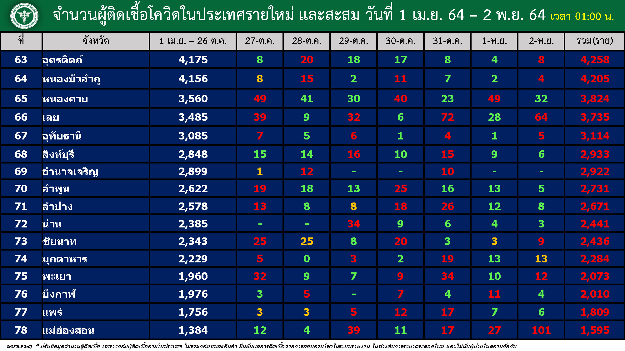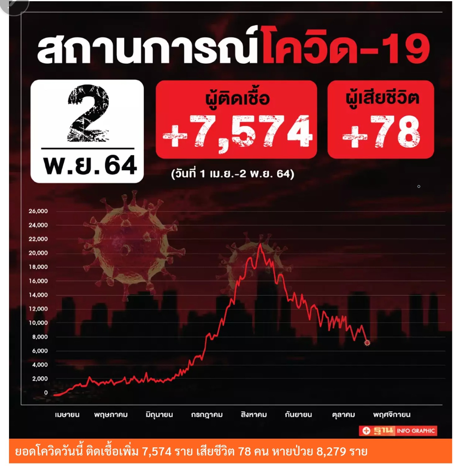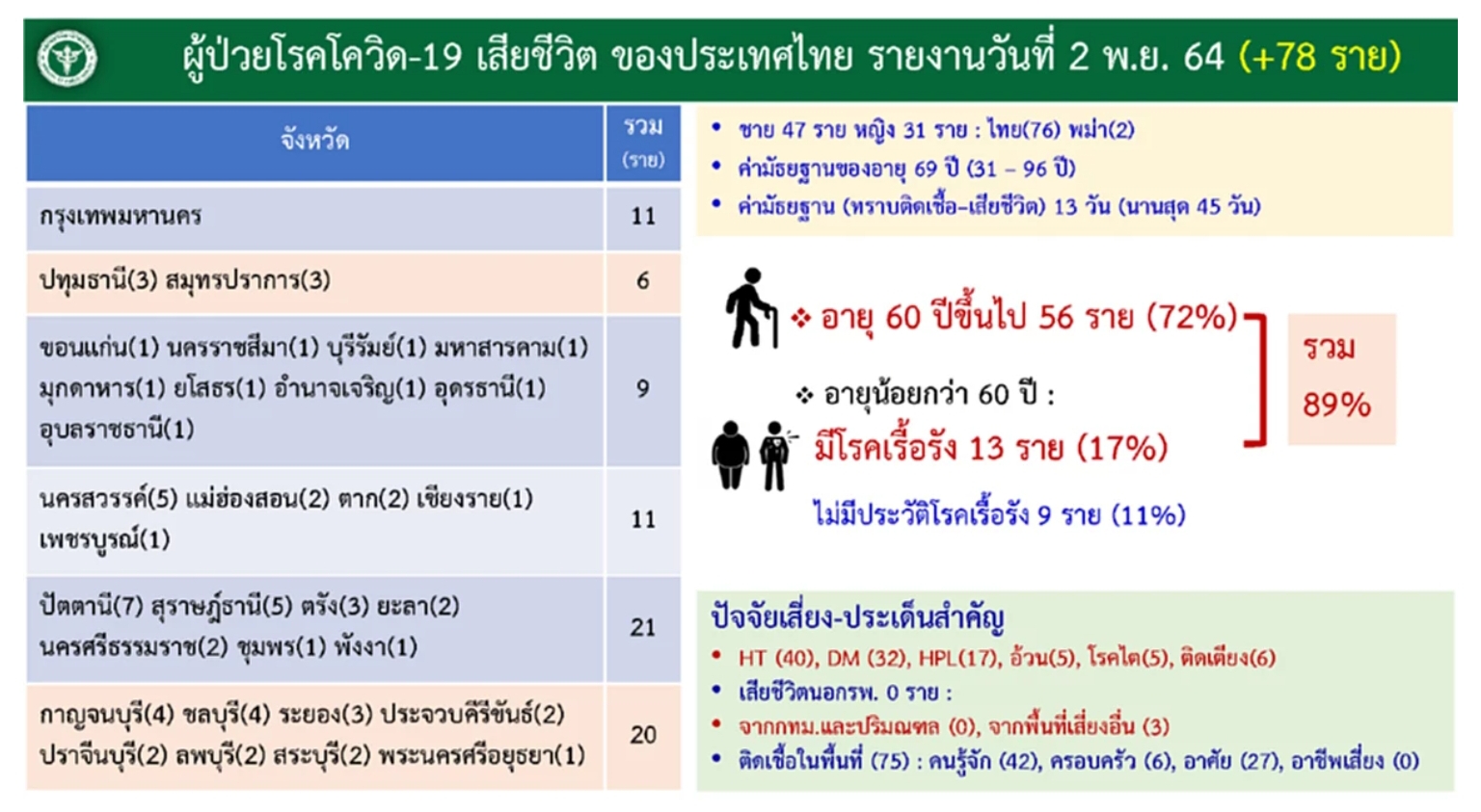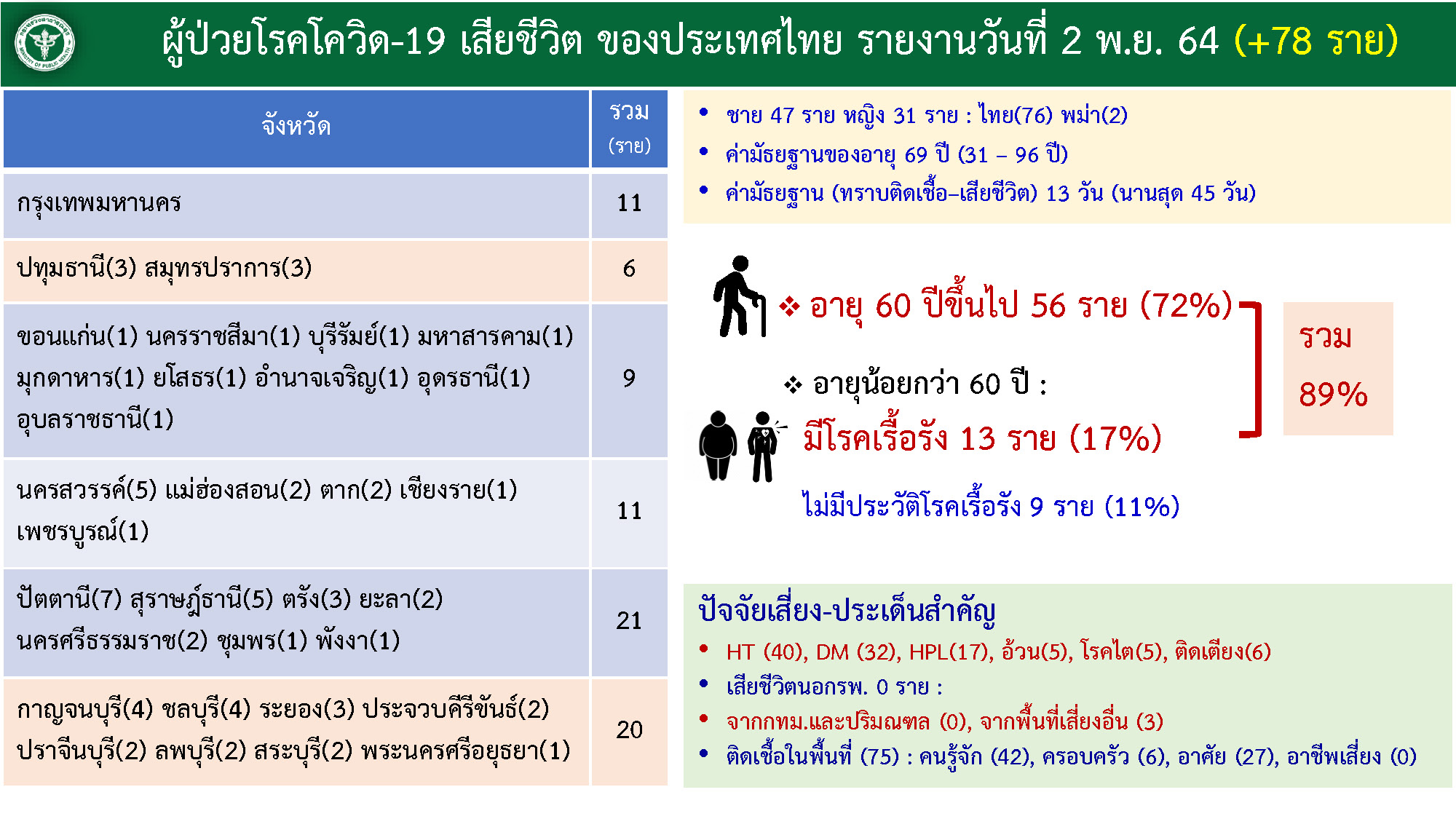 วันอังคารที่ 2 พฤศจิกายน 2564 จำนวน 78 ราย