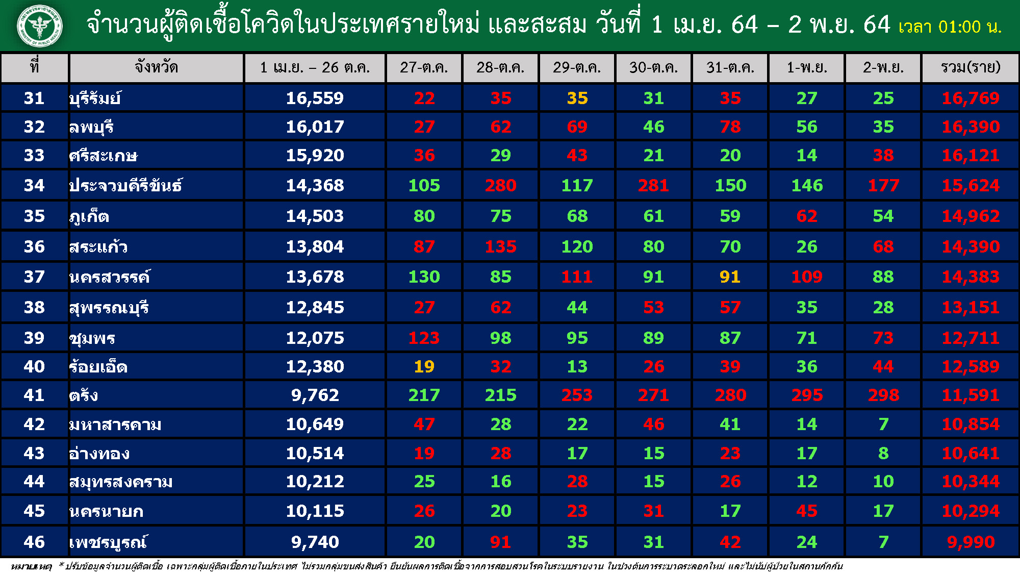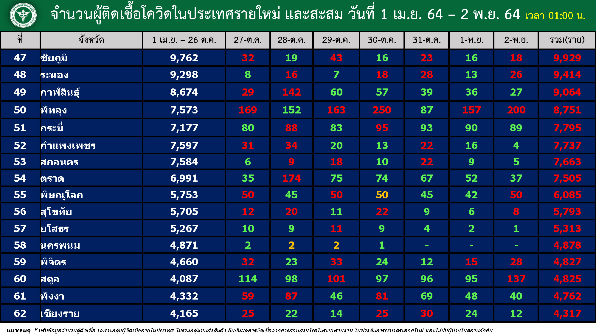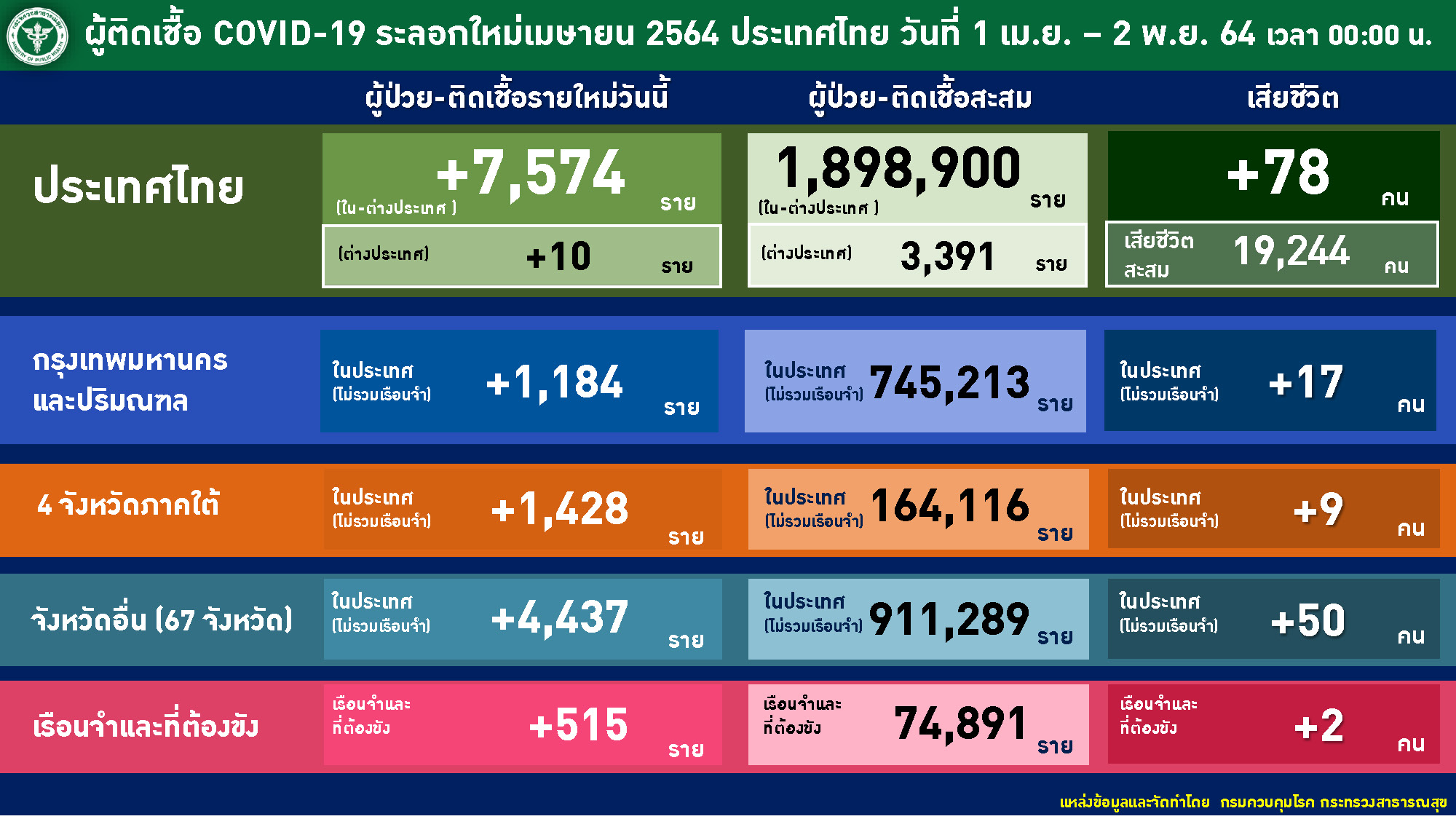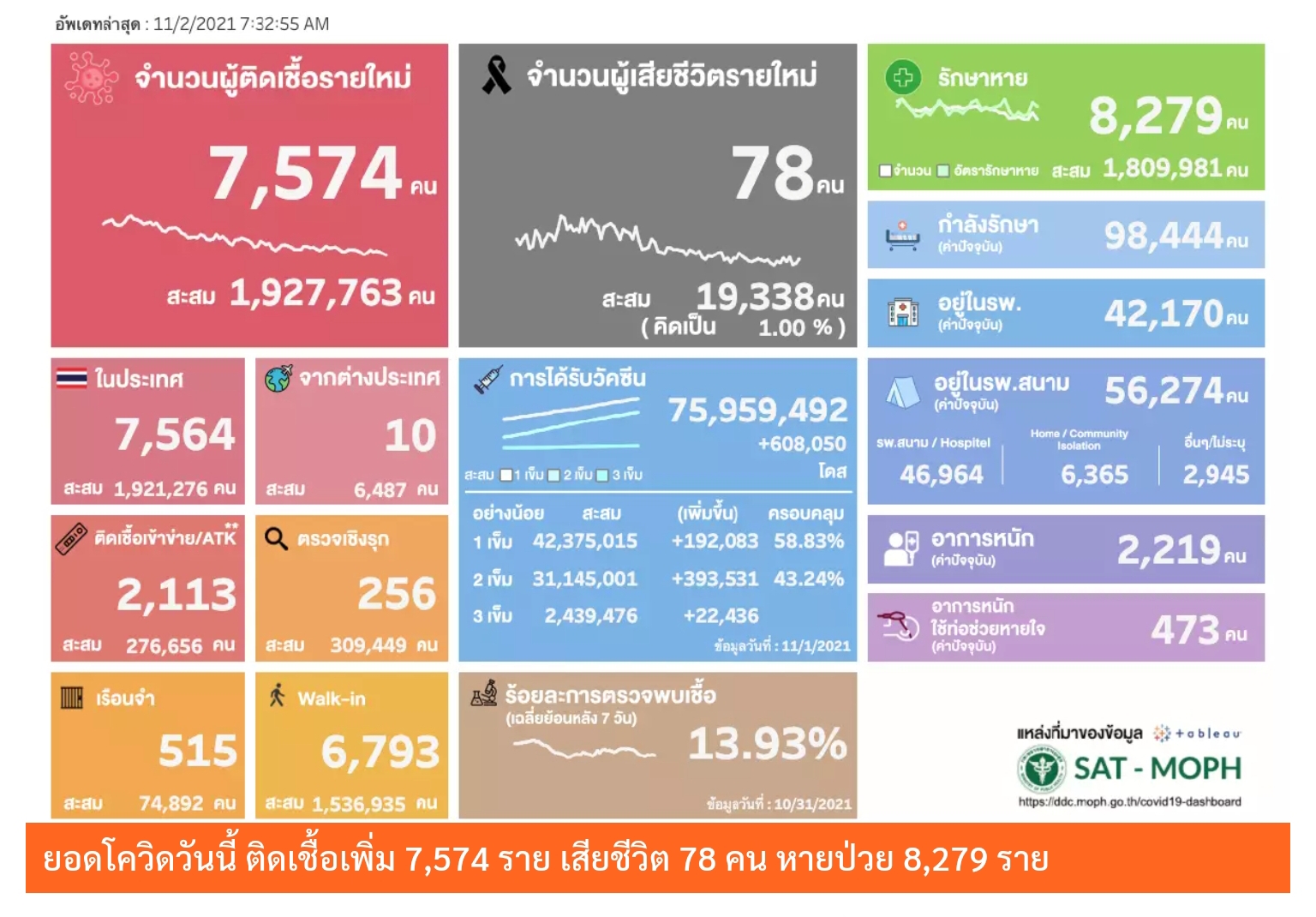 วันอังคารที่ 2 พฤศจิกายน 2564 จำนวน 78 ราย