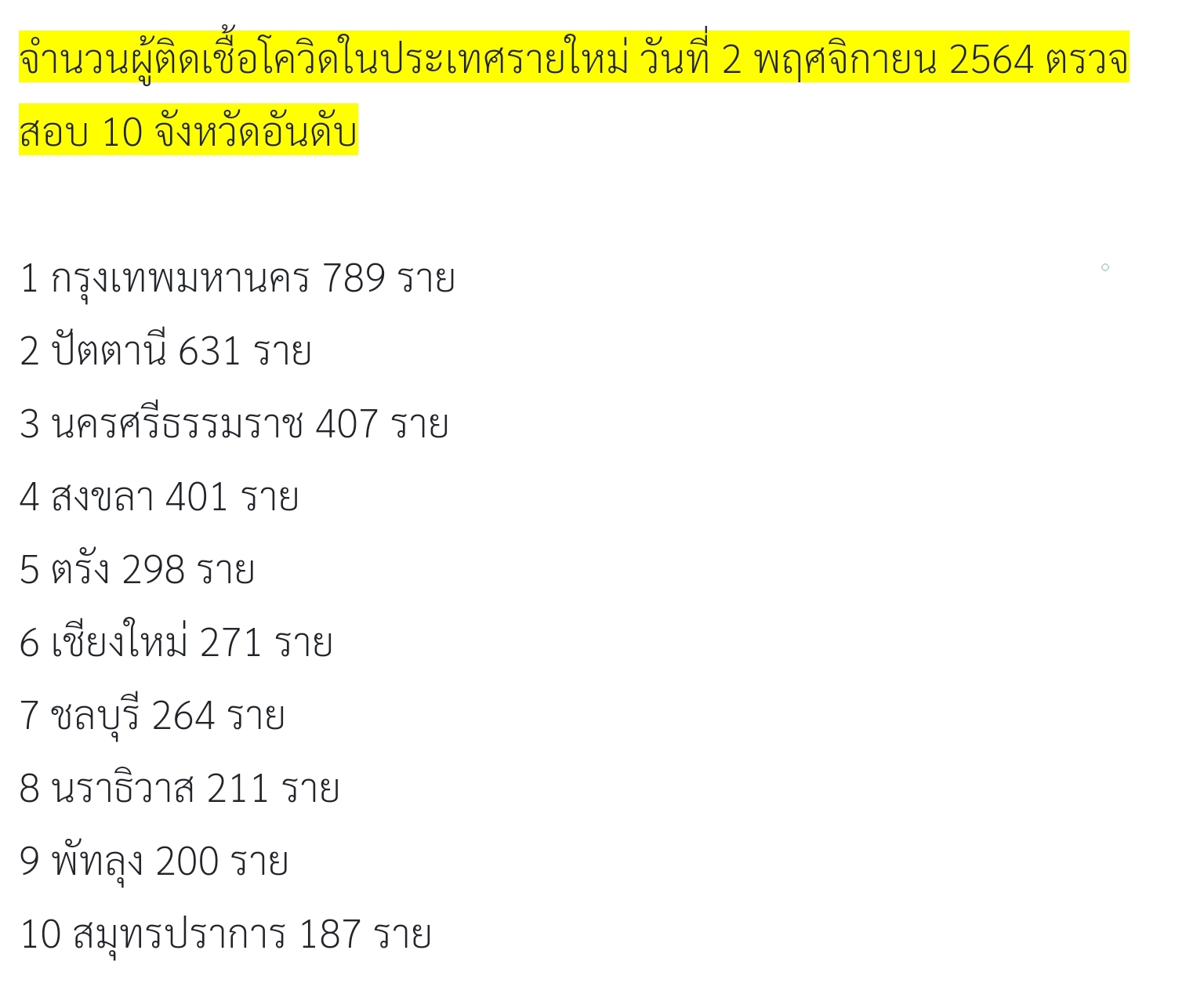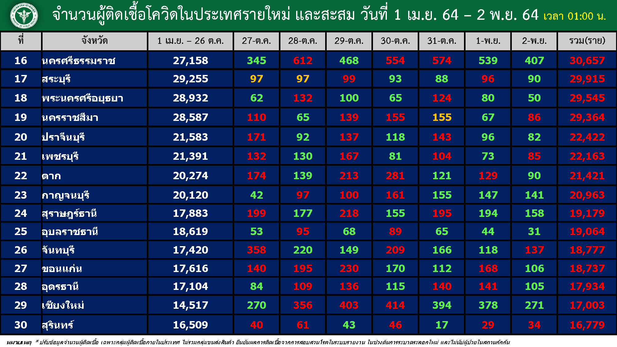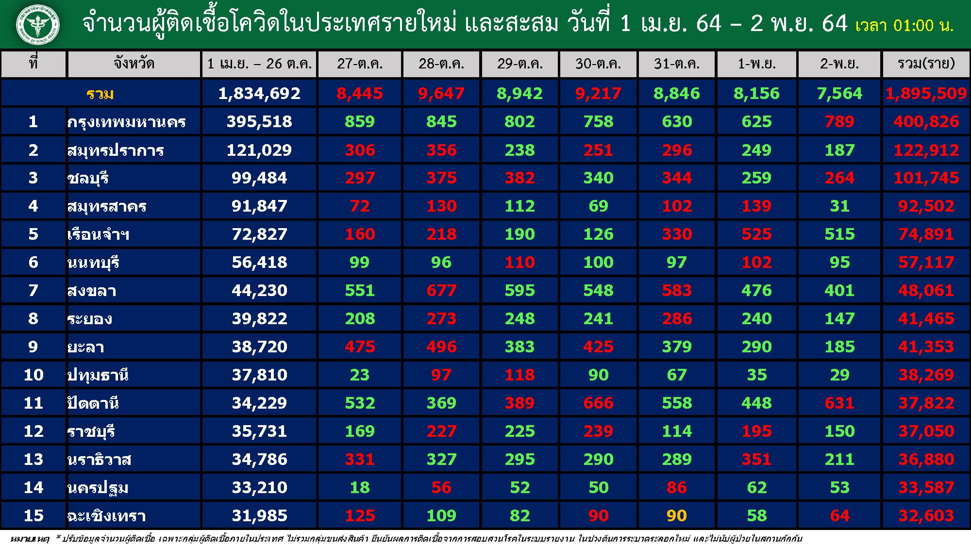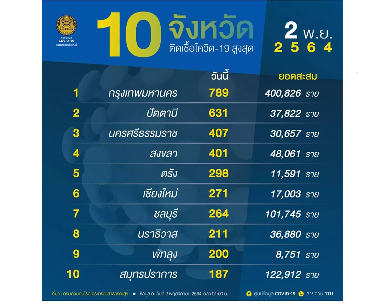 วันอังคารที่ 2 พฤศจิกายน 2564 จำนวน 78 ราย