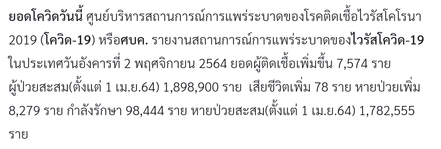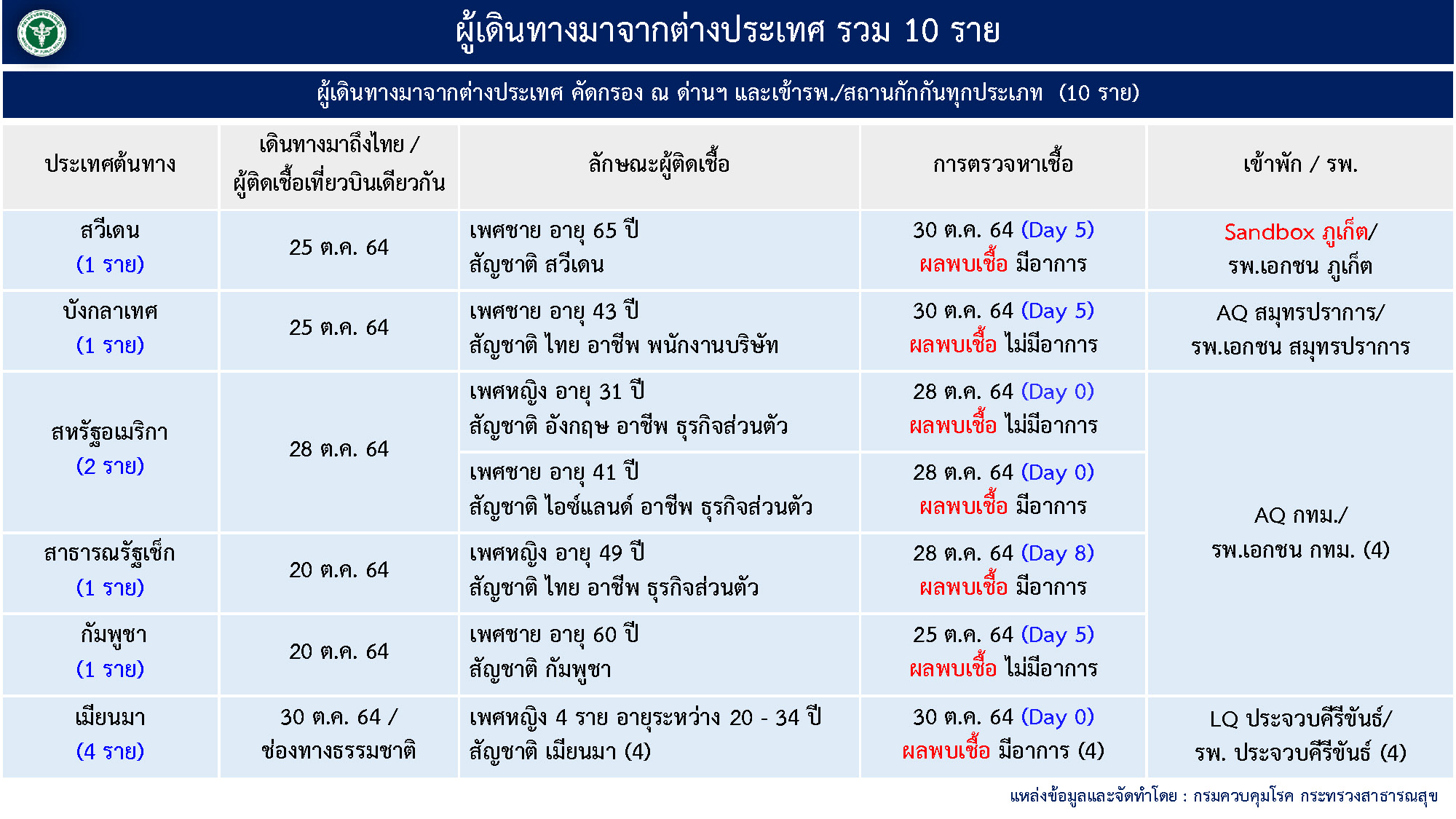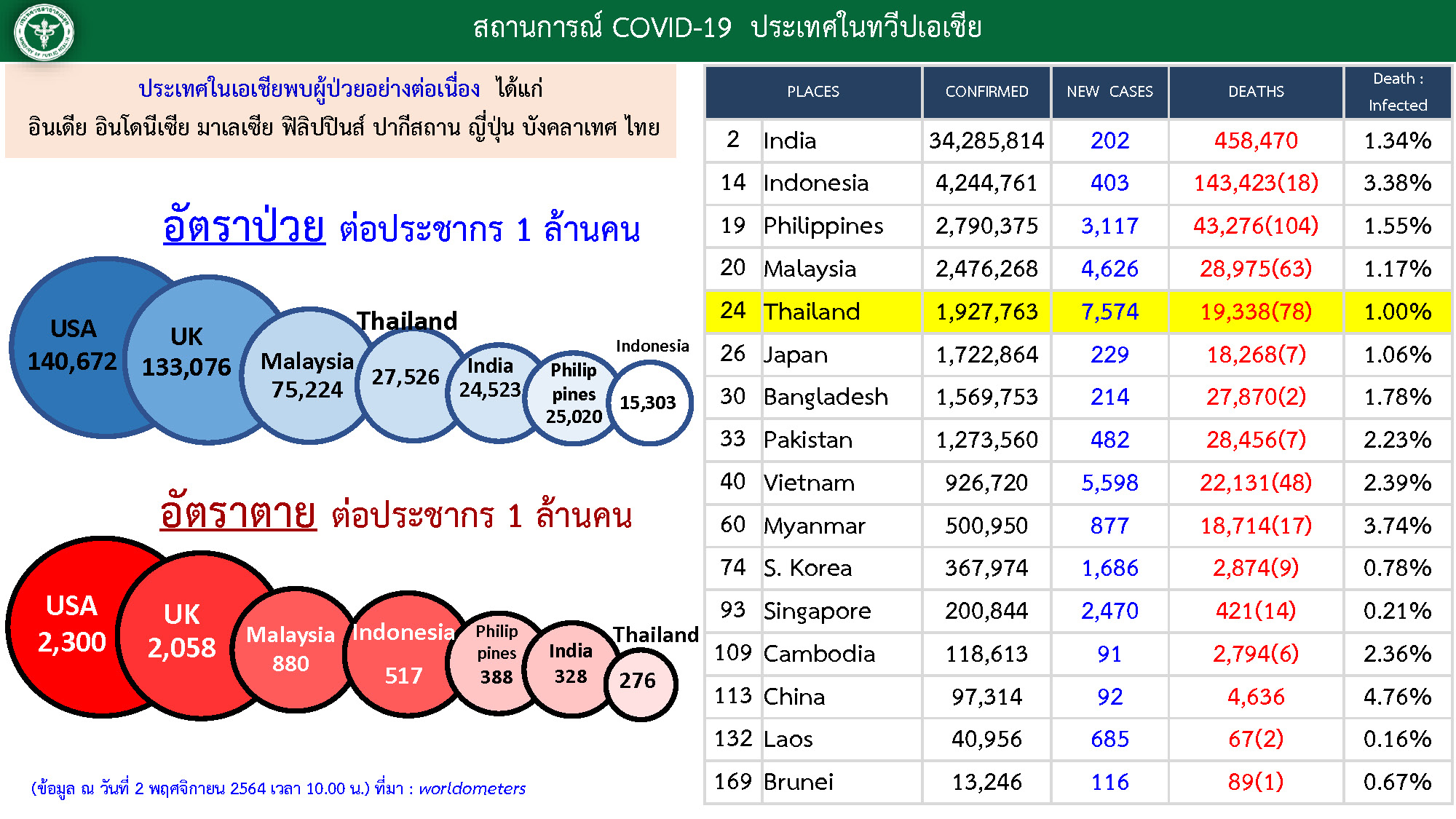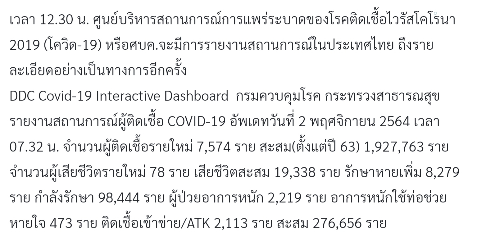 วันอังคารที่ 2 พฤศจิกายน 2564 จำนวน 78 ราย