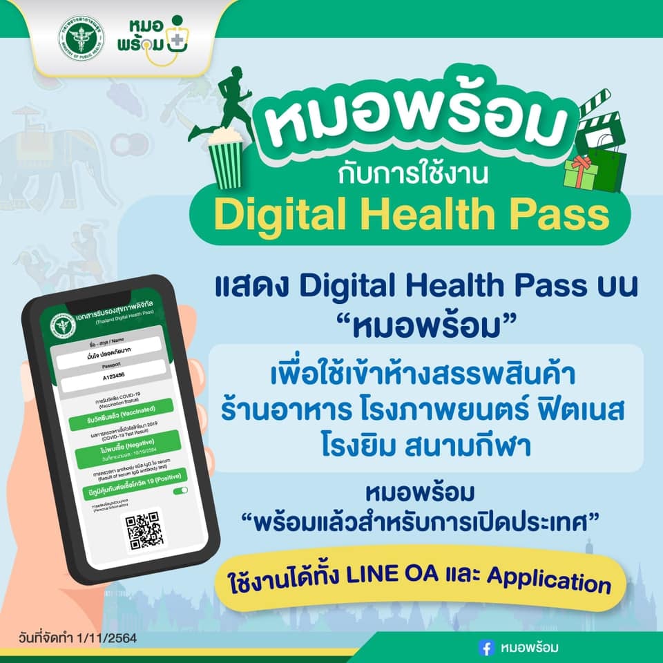 “ข้อมูลที่จะปรากฏใน Digital Health Pass จะต้องให้ผู้ประกอบวิชาชีพด้านสุขภาพเป็นผู้ลงข้อมูล ดังนั้น ประชาชนที่ตรวจ ATK ด้วยตนเองและต้องการให้ผลการตรวจแสดงในหมอพร้อม แนะนำประสานกับร้านขายยาที่ซื้อชุดตรวจ ATK ให้ช่วยบันทึกผลการตรวจผ่านหมอพร้อม สเตชั่น เพื่อให้มีข้อมูลในระบบเป็นหลักฐานแสดงเมื่อเข้าใช้บริการต่างๆ ตามมาตรการ COVID Free Setting ได้”