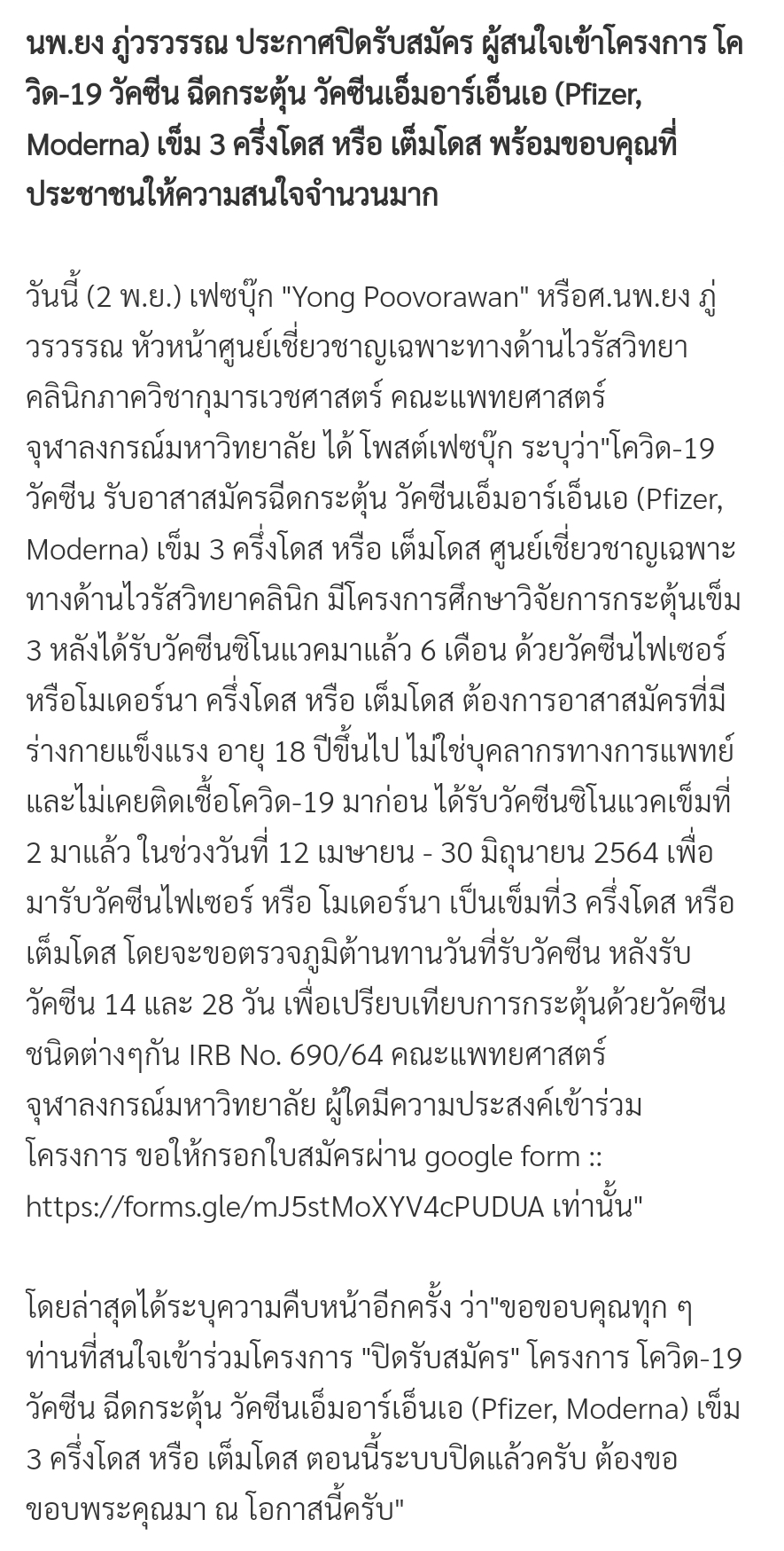 ได้รับความยินยอมจากผู้ปกครอง ระหว่างวันที่ 1 - 10 พ.ย. 64 เวลา 13.00 - 17.00 น.