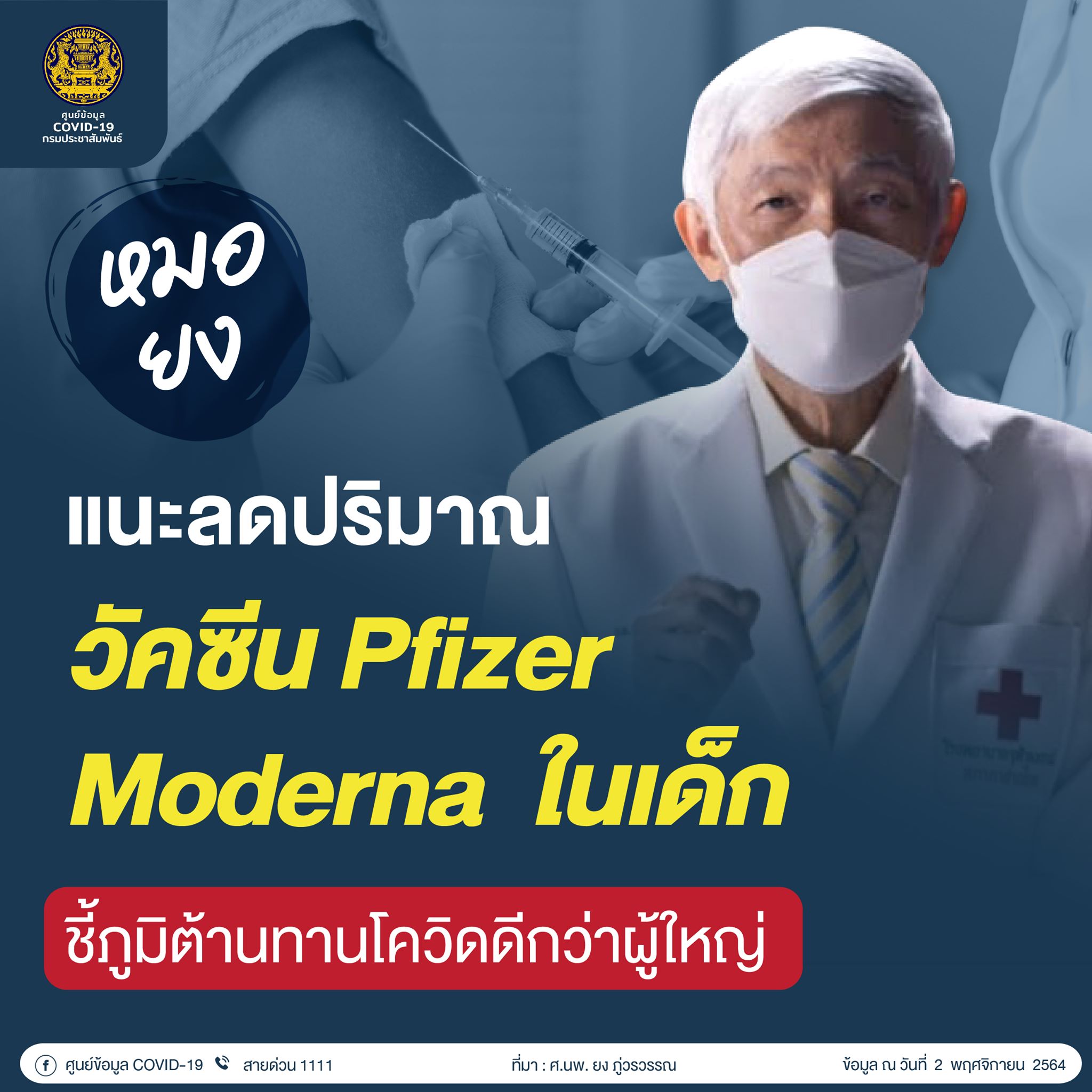 “ หมอ ยง “ แนะลดปริมาณวัคซีน Pfizer Moderna ในเด็ก ชี้ภูมิต้านทานโควิดดีกว่าผู้ใหญ่