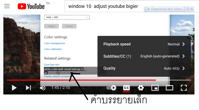ดู youtube กำหนดให้ มีคำบรรยาย ภาษาอังกฤษ คำบรรยายเล็ก เเบบในภาพ ทำยังไงให้ใหญ่ขึ้นครับ